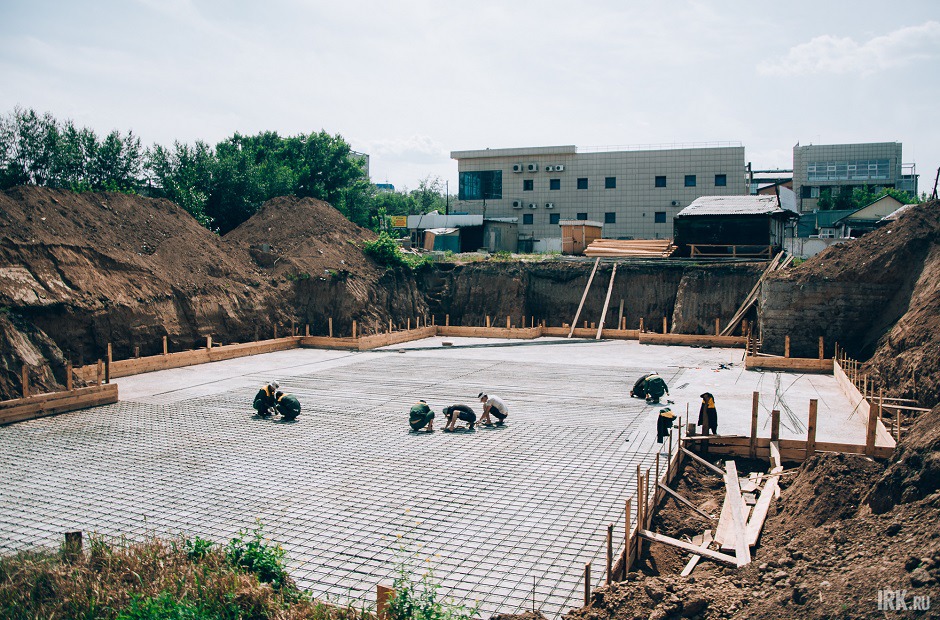 Первый этап работ благополучно завершён: рабочие выкопали большой котлован, произвели отсыпку метровым слоем гравия, залили подбетонное основание.