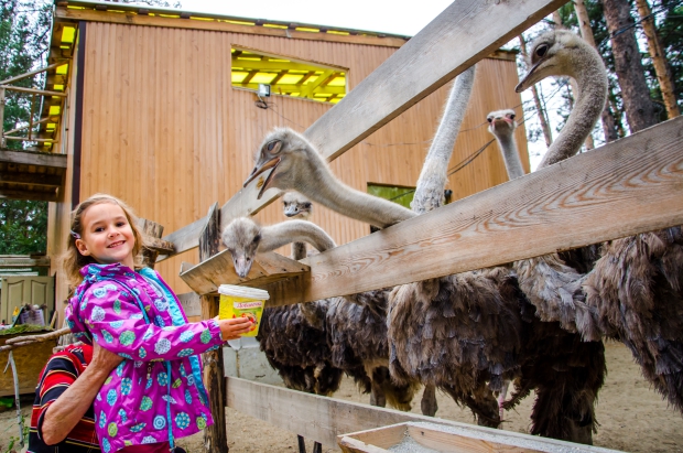 Покормим животных овощами и фруктами. Дети покатаются верхом на ослике Ласке. В завершение экскурсии ребятишки получат подарки от страусов на память. Стоимость 800 рублей (для детей), 500 рублей (для взрослых).