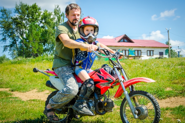 Детей прокатят на мотоцикле в защитном шлеме. Взрослые прокатятся самостоятельно в экипировке после инструктажа и под контролем профессионалов. Стоимость — 650 рублей с человека.