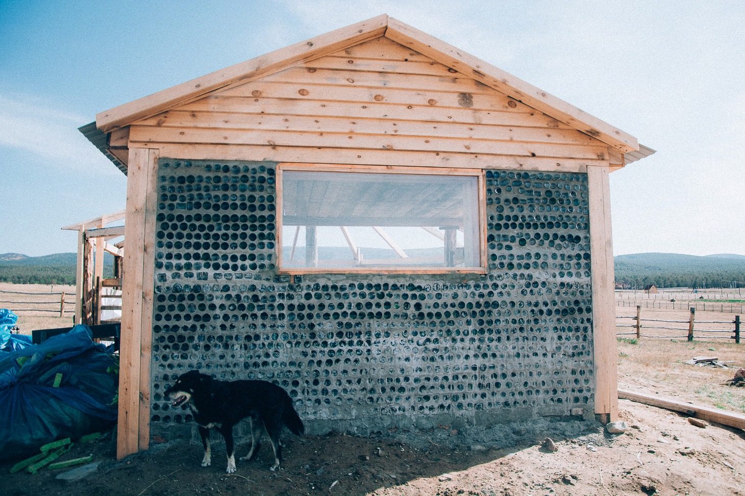 Диаметр юрты достигает 9 метров, толщина стен — 40 сантиметров. Помимо бутылок используется раствор, бетон, деревянные балки. Крышу Петр планирует покрыть профлистом. К началу сентября для создания стен Петр Холутов использовал около 8 тонн бутылок.
