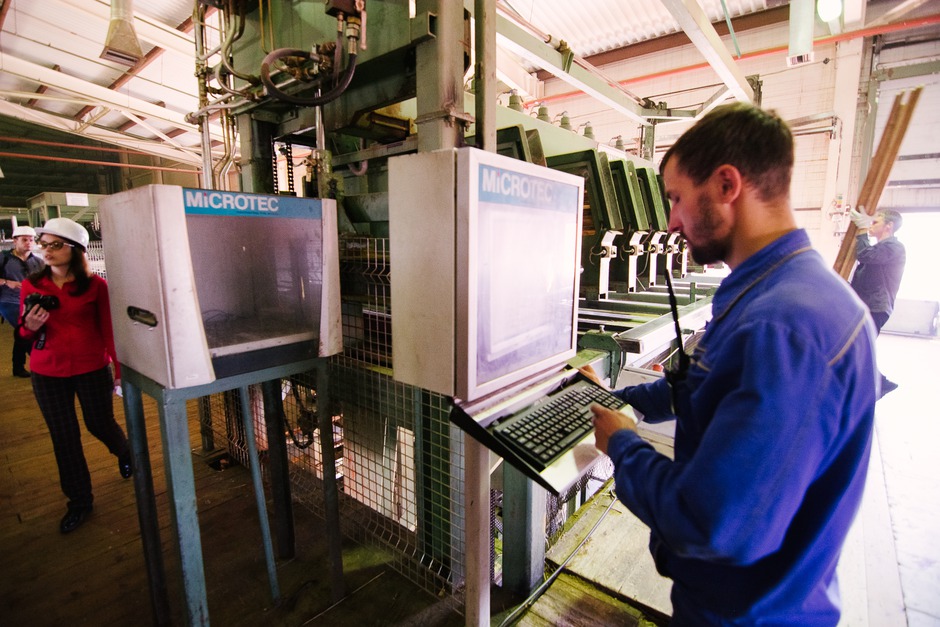 Чуть больше часа, и мы уже в Усть-Куте, на заводе Транссибирской лесной компании (ТСЛК). Это предприятие-миллионник: в год здесь перерабатывается миллион кубометров древесины. В стране два таких крупных предприятия, второе — в Красноярском крае. Но там старый завод, модернизации не было.