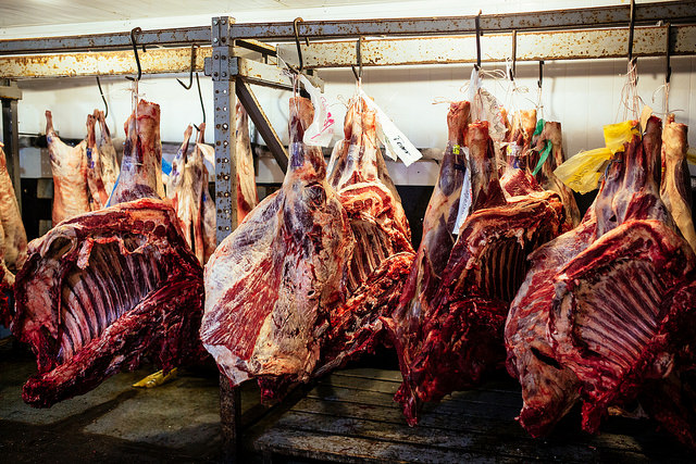 Для каждого вида продукции установлен свой температурный режим. Мясо, например, хранят в условиях сильной заморозки — до минус 17 градусов. Продукты распределены по восьми холодильным камерам: молочная продукция, колбаса, мясо, курица, рыба, еще одна камера с рыбой, вторая камера с молочной продукцией и зелень. Руководство рынка в будущем планирует заменить стеллажи для мясной продукции.