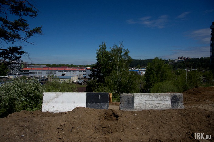 Чуть ниже предполагаемого места строительства стоят бетонные блоки. Женщина пояснила, что «Иркутскавтодор» установил их по просьбе собственников, поскольку подъездные пути застройщик не согласовал с городом.