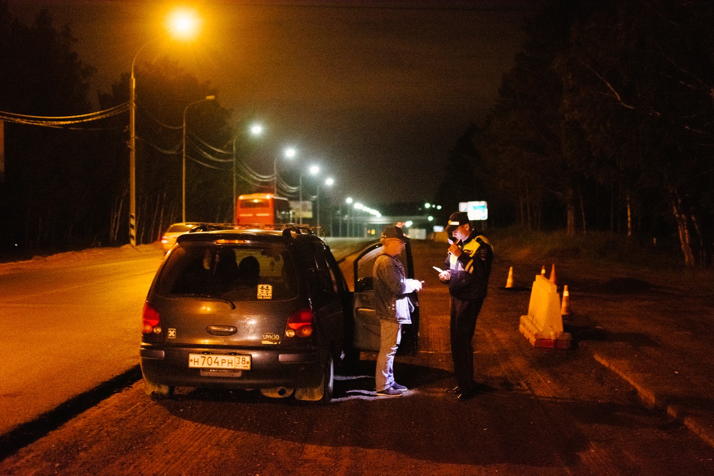 Проверив по пути еще несколько постов, поехали на Верхнюю Набережную. По рации сообщили, что там поймали пьяного за рулем. Вот вам и запрет алкоголя. Пришлось спуститься практически к берегу Ангары, в сторону «квадратов», чтобы обнаружить нарушителей и экипаж. Возле старенькой Toyota стояла пара парней и девушка.