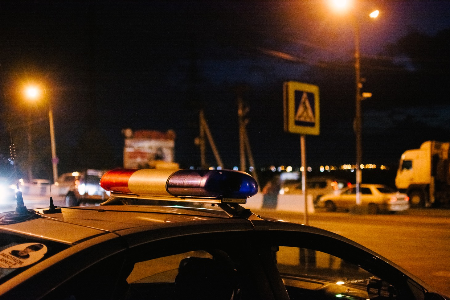 Почти полночь. Подъехав, увидели полицейский автомобиль, где сидел нарушитель. На обочине стоял старенький синий ВАЗ, ожидая своего хозяина.