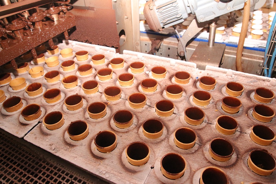 Далее масса поступает в дозирующее устройство и отправляется в вафельный стаканчик (кстати, вафли для пломбира «Золотой Стандарт» производитель печет самостоятельно), где принимает окончательную форму.
