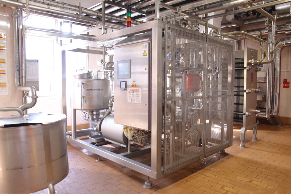 Молоко пастеризуется, охлаждается и уходит в цех составления смеси, где в автоматическом режиме компоненты взвешиваются и смешиваются. Автоматизация большинства процессов помогает исключить ошибки, связанные с человеческим фактором.