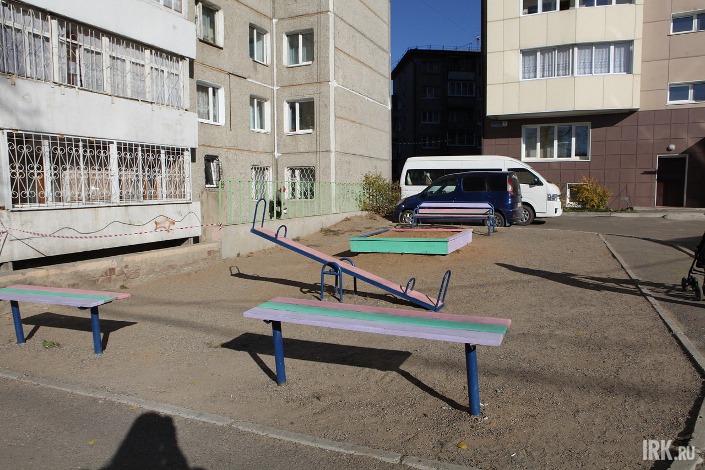 Невооруженным взглядом видно, что территория вокруг дома не соответствует требованиям современного градостроительства. Нет, съездов, проезды узкие, двор маленький, а детские площадки — тихий ужас.