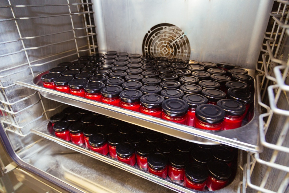 Процедура занимает от 10 до 15 минут. В аппарате также обрабатывают стеклянные баночки, в которые разливают готовый продукт.