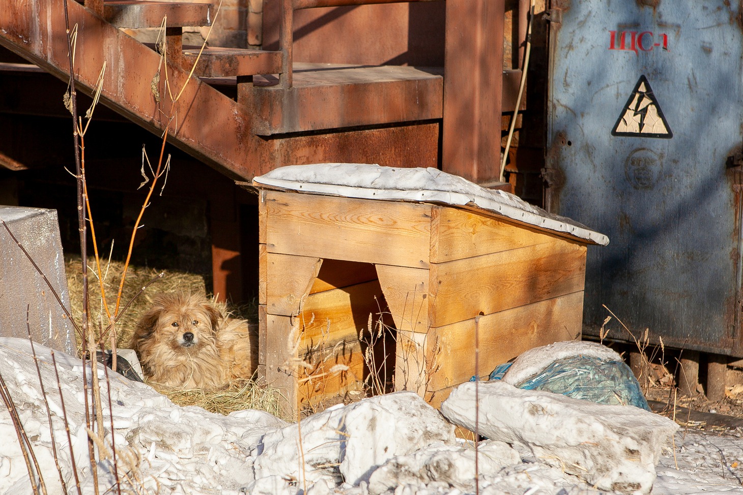 В тот момент, когда мы приехали снимать объект, представители компании увозили остатки мебели и техники. Несколько арендаторов остаются в деревянном доме. Это типография и швейная мастерская.