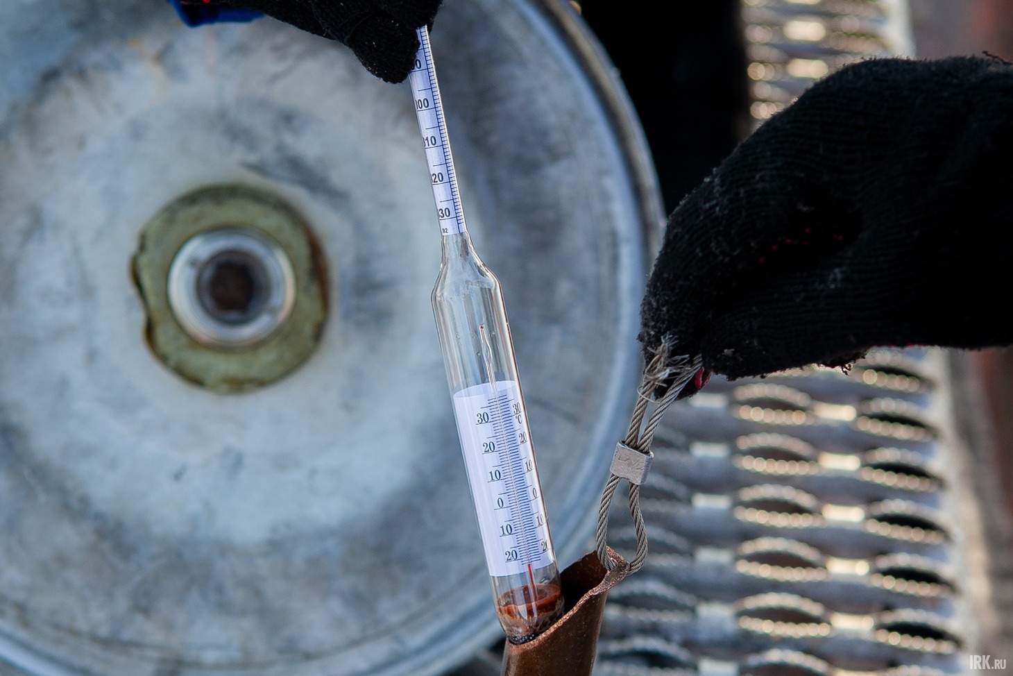 Перед сливом нефтепродуктов в резервуары, они проходят контроль. В первую очередь проверяют наличие необходимых документов, а потом и качество нефтепродукта. При мне директор при помощи пробоотборника взяла немного топлива из цистерны и замерила плотность и температуру жидкости ареометром (прибор для измерения плотности жидкостей и твёрдых тел, принцип работы которого основан на законе Архимеда — Прим. ред.). Анастасия Александровна пояснила: замеры проводят и в резервуарах АЗС каждую смену.