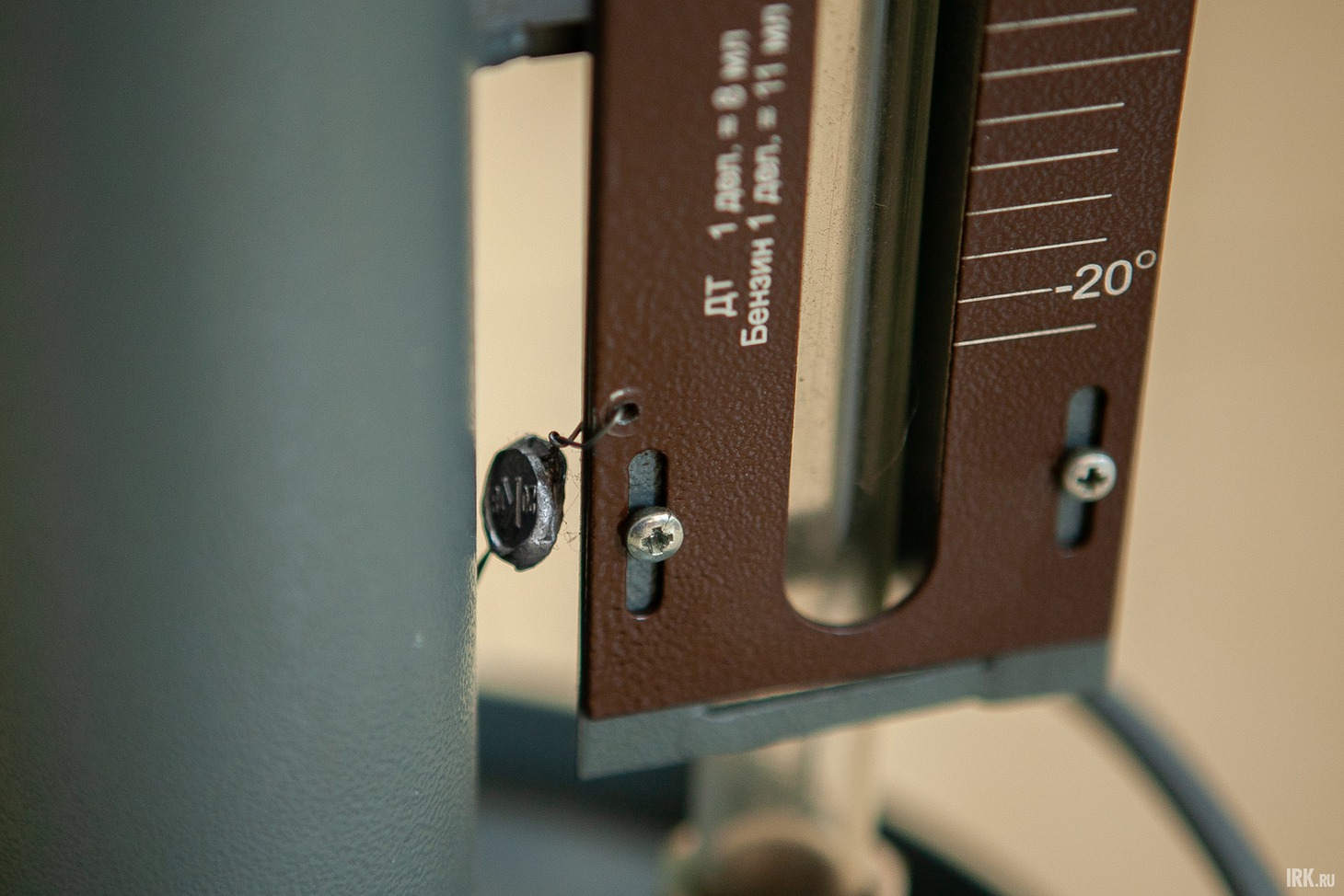 — На мернике установлена рамка. Что бы убедиться, что колонка работает правильно, через мерник отливают 10 литров топлива, которые должны быть в пределах этой рамки.