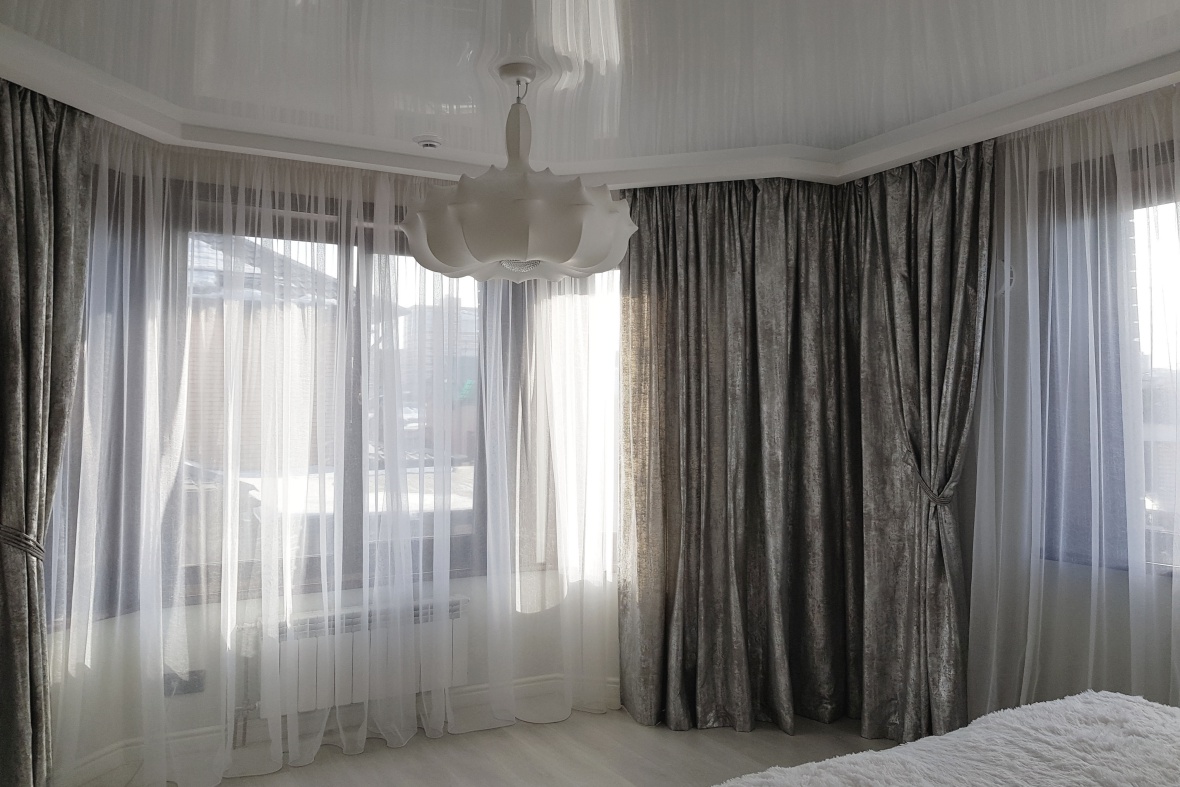 3. Отдельно скажу про выбор тюля. Если мы говорим о квартирах, то, как правило, это всегда небольшие помещения, поэтому рекомендую выбирать ткань белого или слегка молочного оттенка. Таким образом, пространство становится светлее и шире. Если выбрать тюль с оттенком, вы рискуете получить мрачную, тусклую комнату.