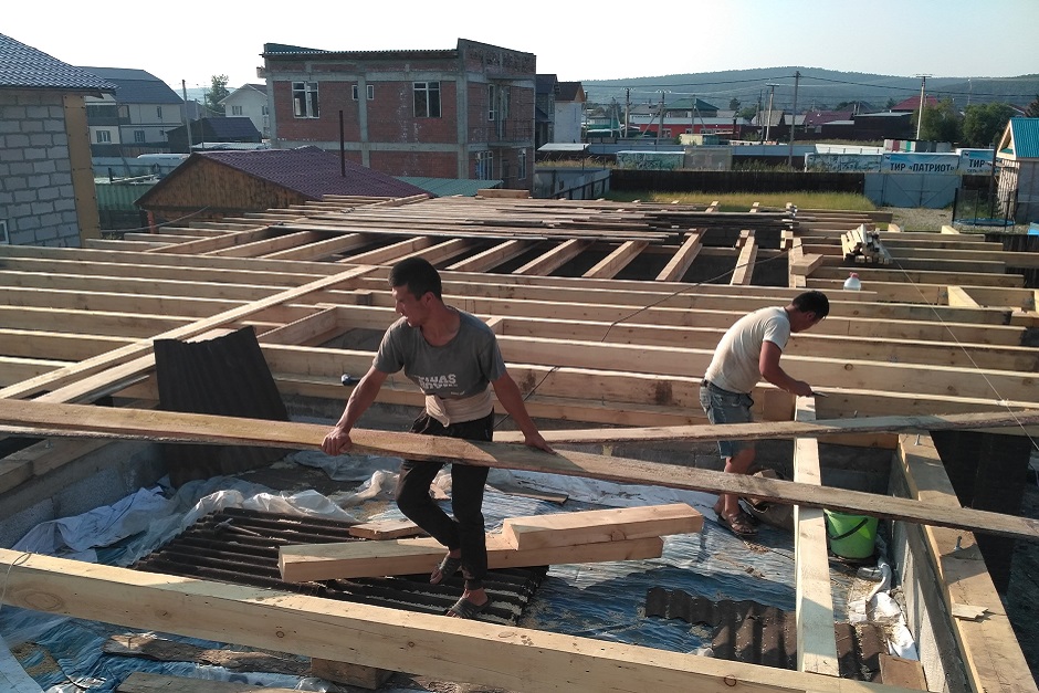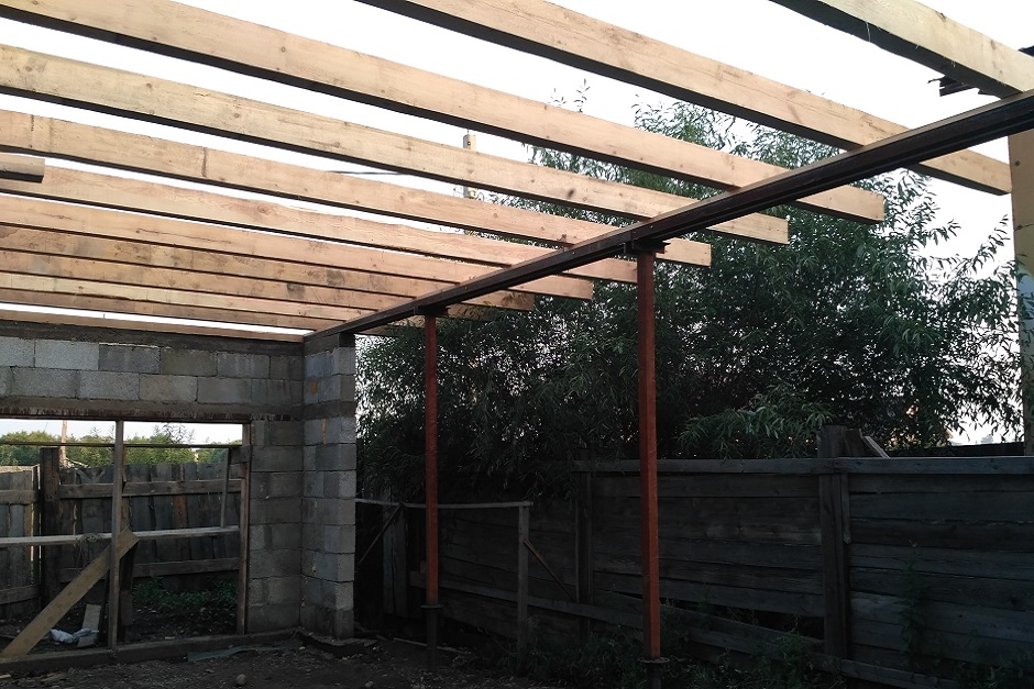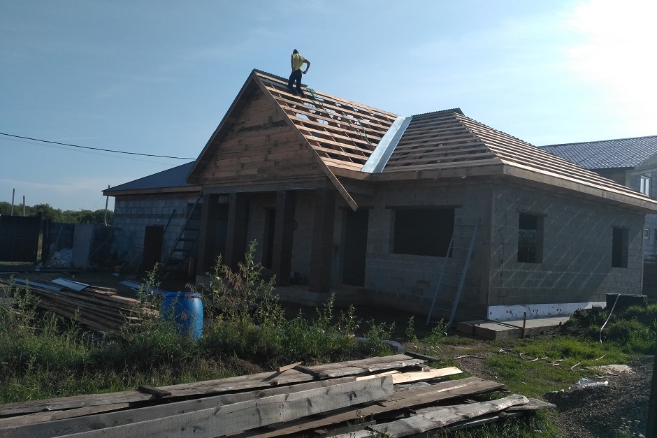 В качестве кровельного материала использовался профлист 21-й. Начали монтаж.