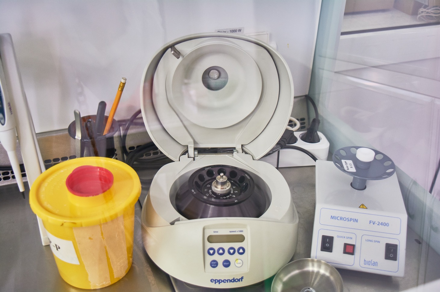 На первом этапе выполняют первичную обработку материала, его обеззараживание. Для того чтобы обезопасить себя, сотрудники лаборатории работают в защитных костюмах, масках, перчатках, сапогах или галошах.