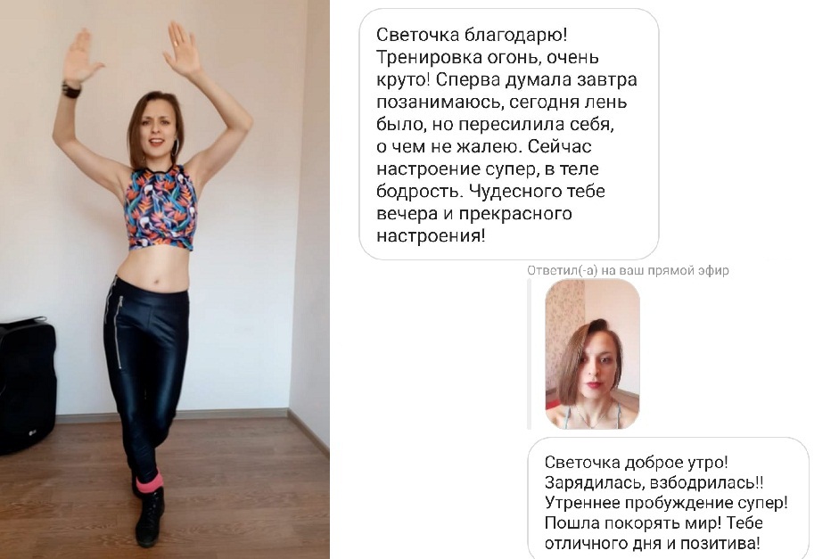 — Для моих девчонок, которые привыкли танцевать в офлайне, был шок, не всем был удобен новый формат. У меня занимаются женщины от 27 до 40 лет. Пришлось разбираться в инстаграме, для нас это было целое дело, особенно первые занятия. Возникали технические вопросы: где смотреть трансляцию, как подключиться. Большая часть группы присоединилась к занятиям онлайн, что радует, — рассказывает фитнес-тренер.