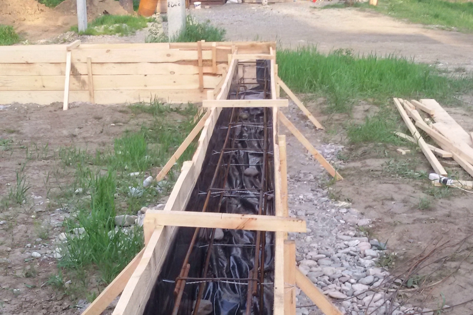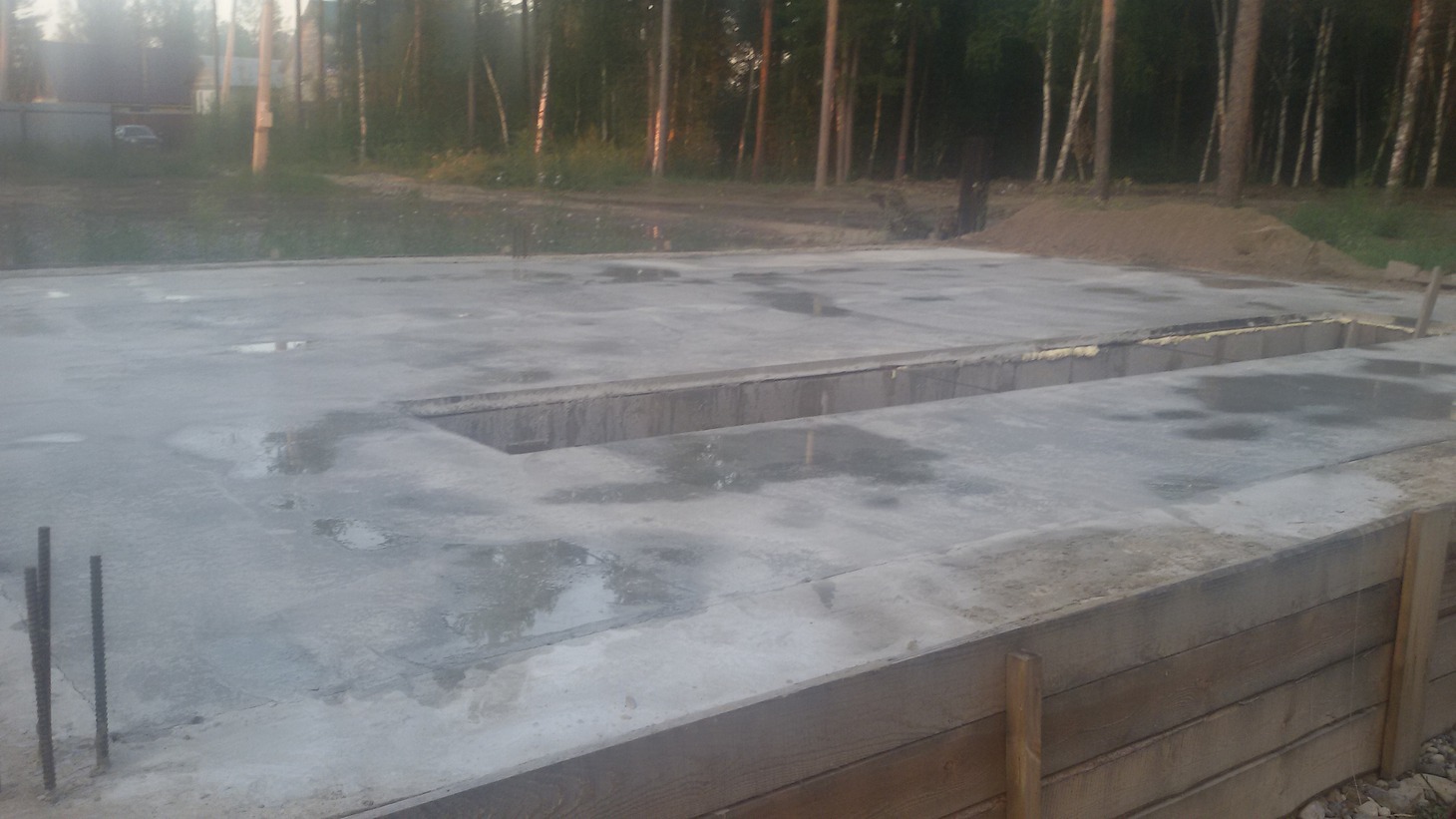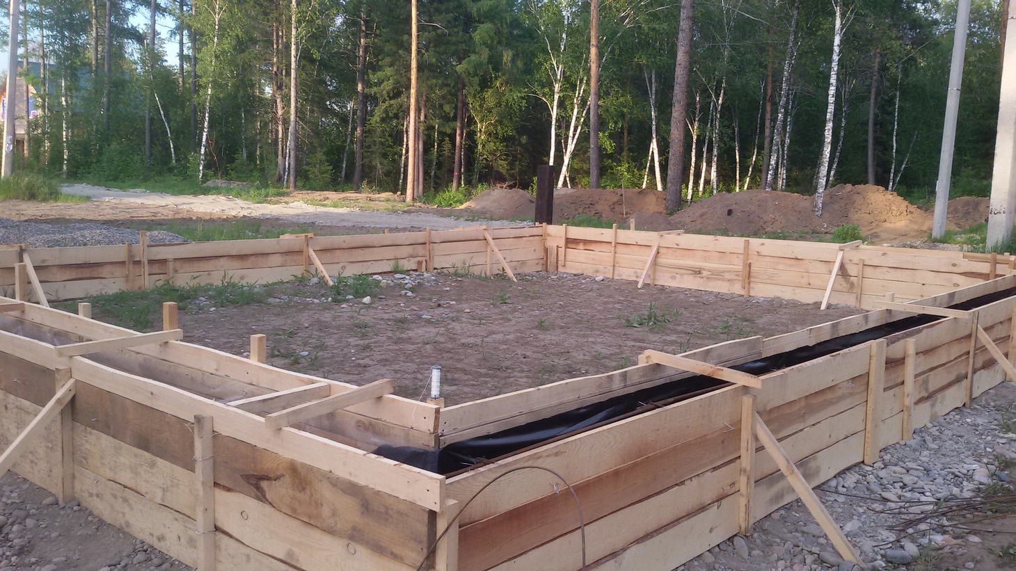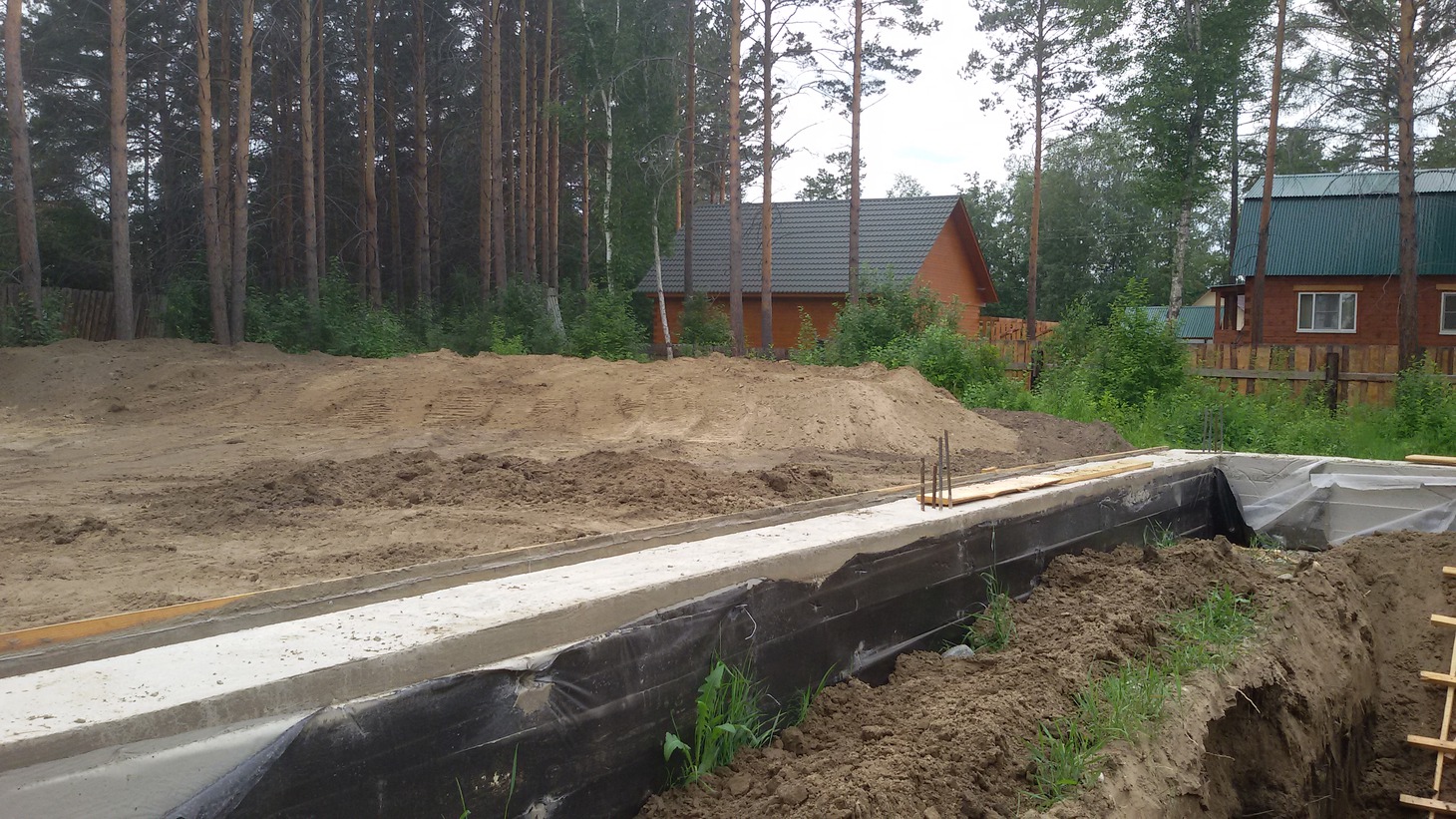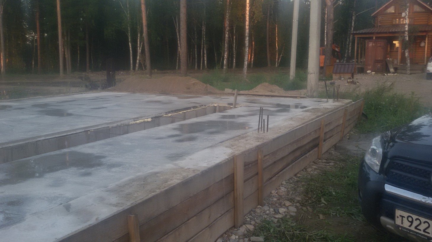 Следующим этапом была постройка бани, она же гостевой домик. Для фундамента выбрал «Бёрге-бетон». Удивила текучесть состава, миксер залил в ленточную опалубку бетон практически с одной позиции, поэтому, я, уже как опытный «возводитель» фундаментов, рекомендую заполнять все щели монтажной пеной, либо, как в моём случае, использовать полиэтиленовую плёнку, иначе ваши «жидкие деньги» пустятся наутёк во все щели. Кстати после застывания, воспользовавшись четырёхкилограммовой кувалдой, были проведены испытания над застывшими излишками бетона с прошлой и нынешней партии, победителем был признан второй экземпляр. Прошу не повторять опыт без специальной защиты глаз. На данном этапе, пожалуй всё, то есть все деньги из бюджета освоены, теперь копим на дальнейшие строительные мероприятия. Дом мы планируем строить из газобетона.