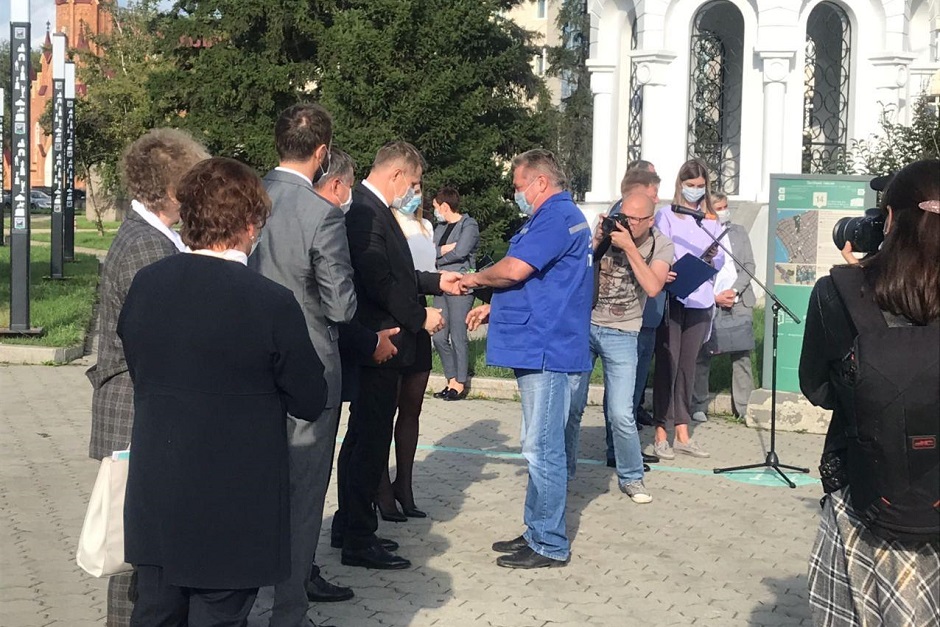 Позже у здания правительства состоялось торжественная передача ключей от машин скорой помощи класса В представителям медицинских организаций Иркутска, Ангарска и Братска.