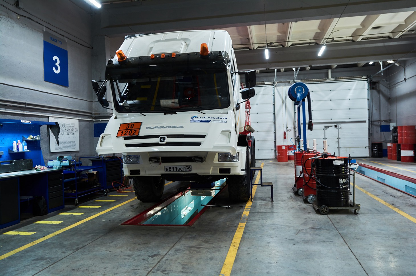 Одновременно в сервисном центре КАМАЗ могут обслуживаться до 12 автомобилей.