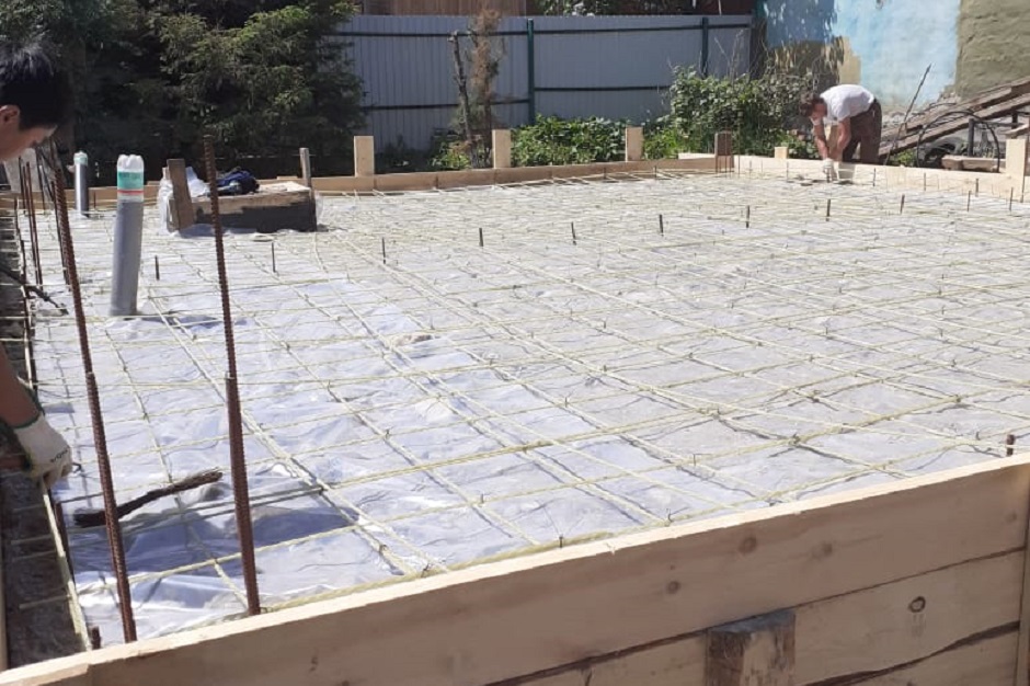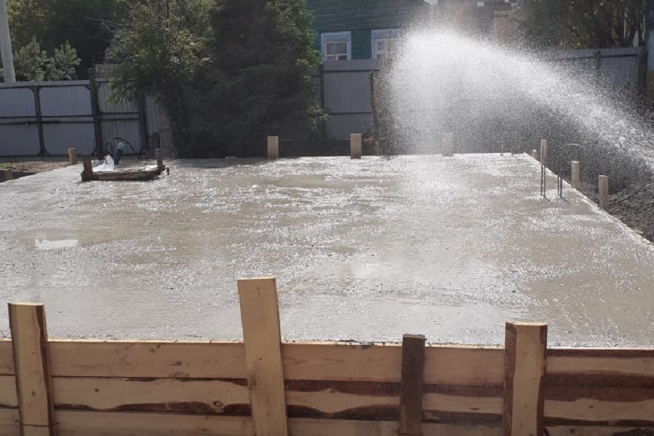 К строительству приступили в конце мая. Сначала залили ленточный фундамент, а затем плиту толщиной 18 сантиметров. Бетон привозили с «Фабрики Бетонов», у них же заказывали швинг.