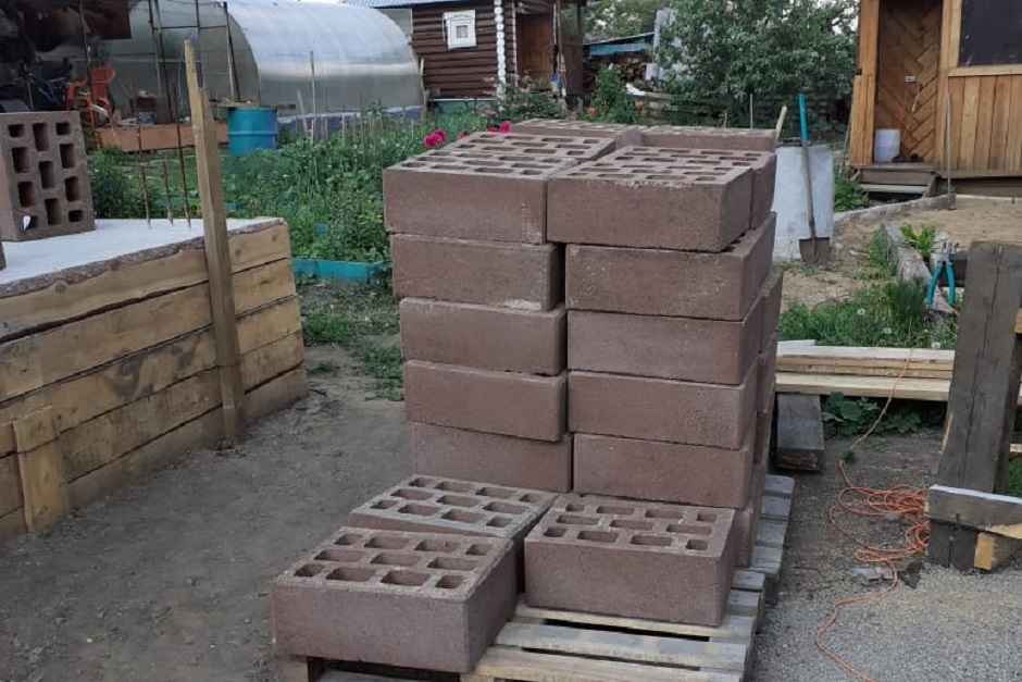 KERRA BLOCK не требует внутренней отделки и внешне напоминает большой кирпич. Он прочный, теплый, влагостойкий, прост в укладке, обладает хорошей звукоизоляцией. В январе 2020 года мы купили керраблоки для стен будущего дома, пескоблоки — для внутренних стен и бетон 200М для фундамента. В подарок нам дали 27 мешков колерованного клея «KROSS KERRA Лето», по цвету идеально совпадающего с блоками. По совету менеджера взяли в аренду (за 2000 рублей) керраформер — это металлический инструмент для экономичного и правильного нанесения клея на блоки.