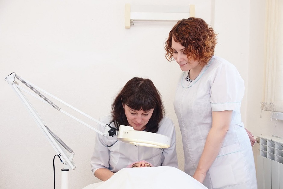 Демонстрируются обучающие занятия будущих специалистов-косметологов