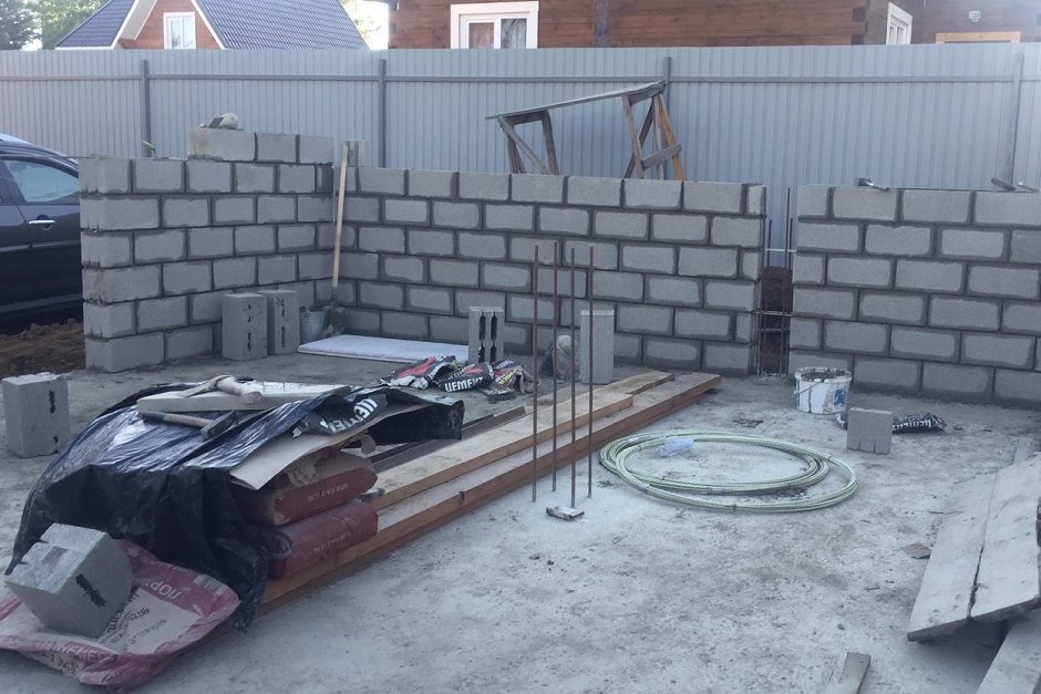 Пескобетонные блоки считаются долговечными и надежными. У них хорошая звукоизоляция и они полностью экологичны. Также комбинируются с другими материалами, в том числе с утеплителями. Приступили к работам.