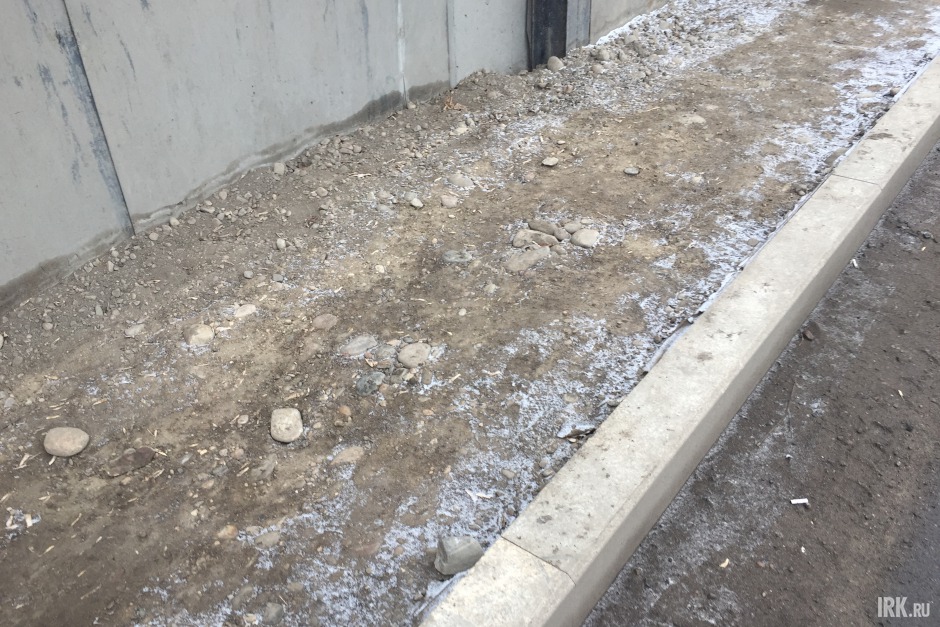 Оказалось, чтобы организовать отвод ливневых вод, уровень дороги на всем протяжении улицы подняли от 30 до 80 сантиметров. Возле дома №95 по улице Култукская дорогу подняли на максимально возможный уровень. А из-за того, что участок расположен близко к дороге, всю территорию вдоль забора, включая вход в гараж, ворота и калитку, дорожные рабочие засыпали почти на метр.