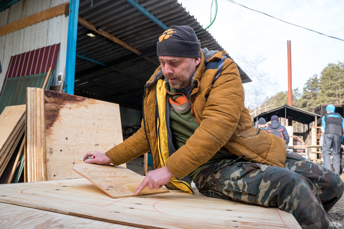 — У нас там организована маленькая мануфактура. Людей много, поэтому разделили их на группы, а сам процесс — на этапы, идет сборка. Вообще запрос на 50 двухместных будок, — говорит Сергей. — Возникла проблема, требующая быстрого решения, — собакам жить негде, зима скоро. Надо было включиться. Это же несложно: выходной на свежем воздухе с пользой для себя и для других, почему нет. Тем более мы давно все не встречались. Появился повод встретиться, попить чайку и поработать, и это классно.