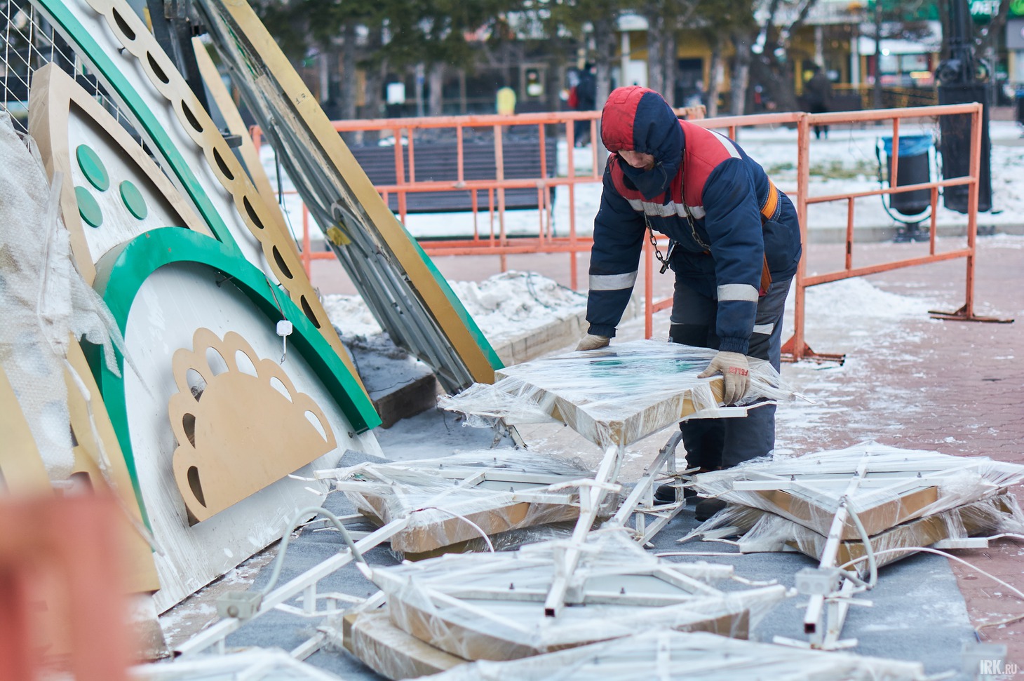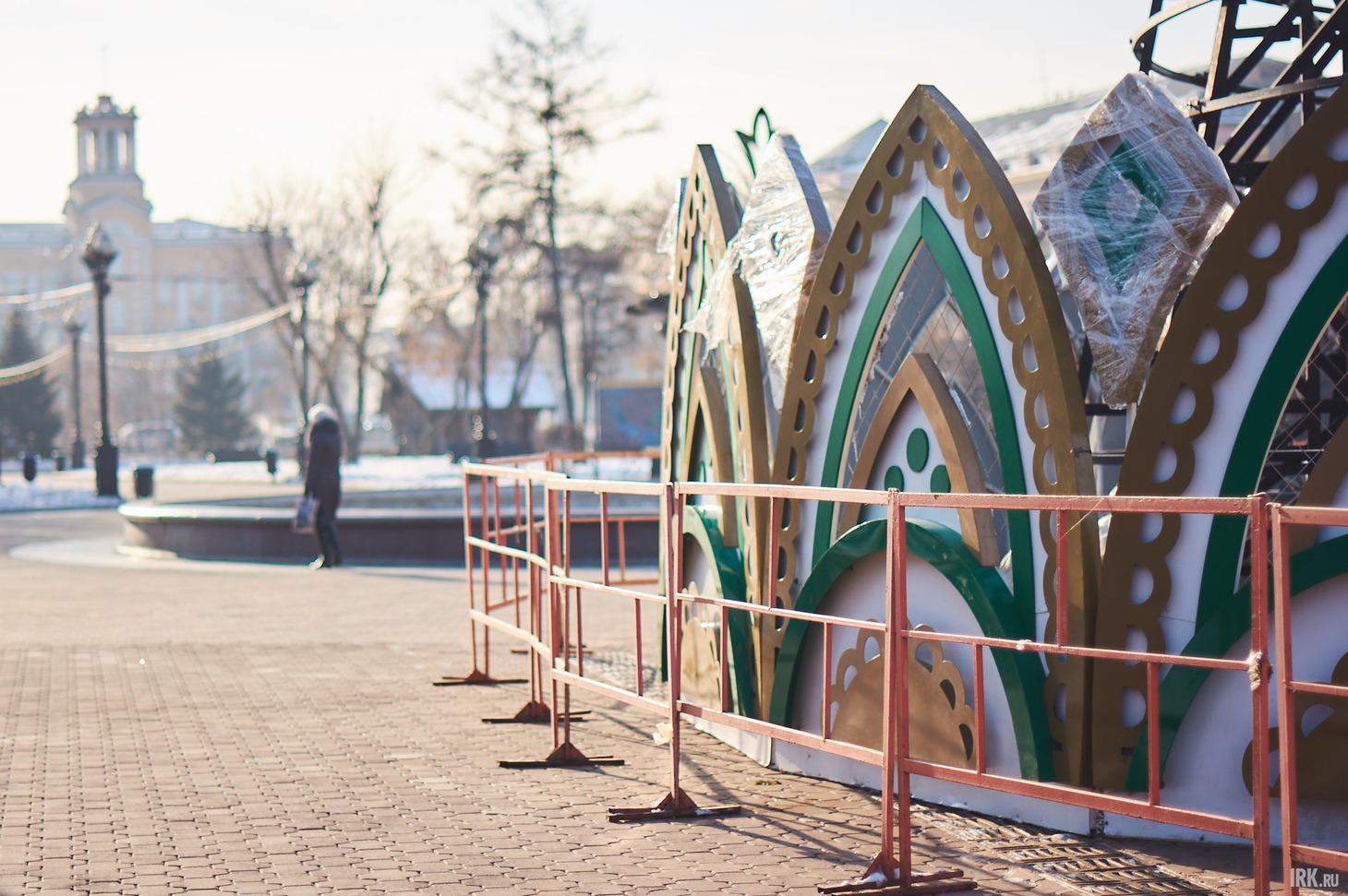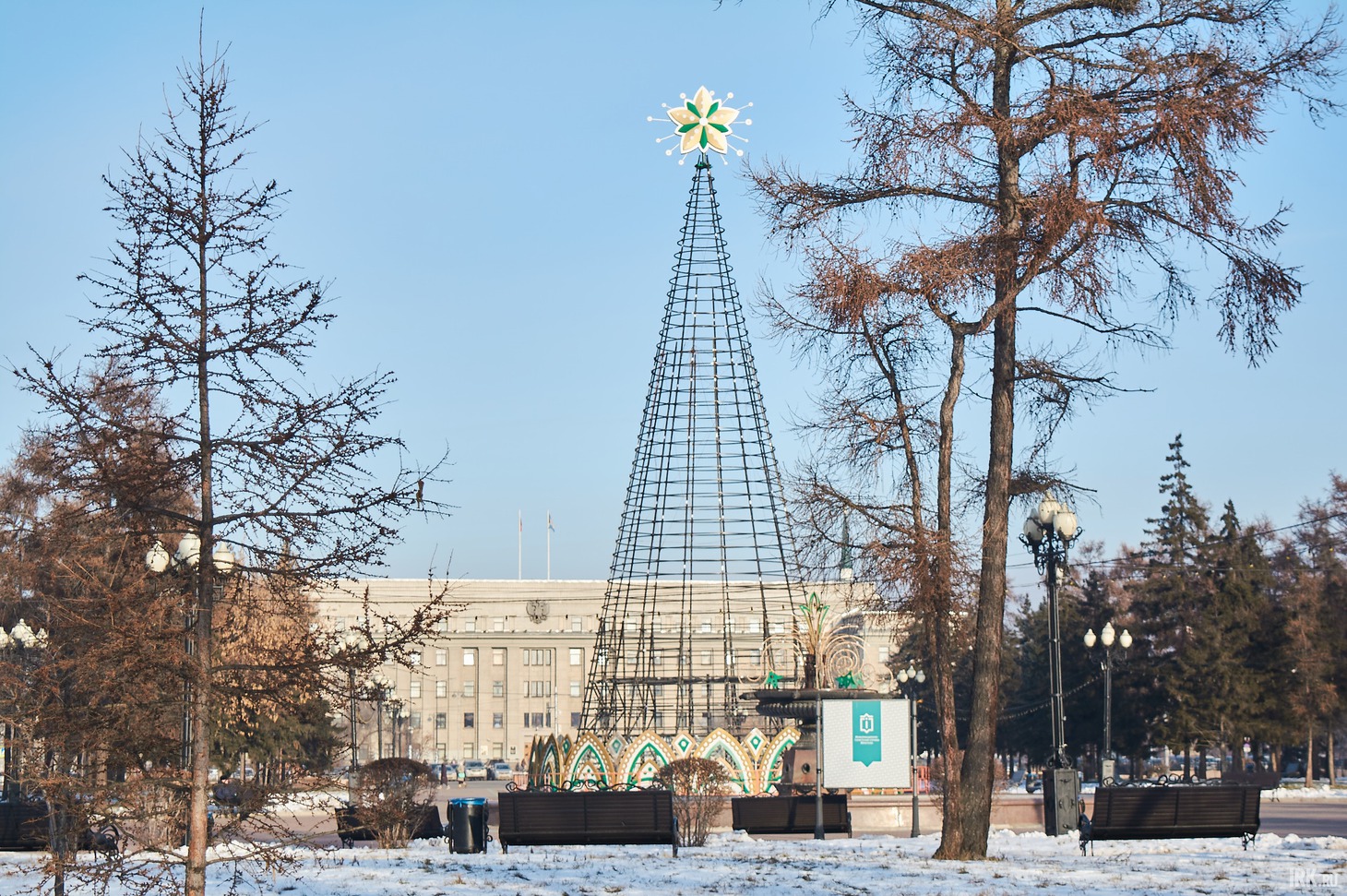Высота главной новогодней елки Иркутска — 27,5 метра. При этом длина металлического каркаса составляет 25 метров. Завершает конструкцию звезда высотой 2,5 метра. Елку хранят в специальных условиях, ее установкой занимаются профессиональные монтажники. Учитывая размеры конструкции, важно обеспечить безопасность для горожан.