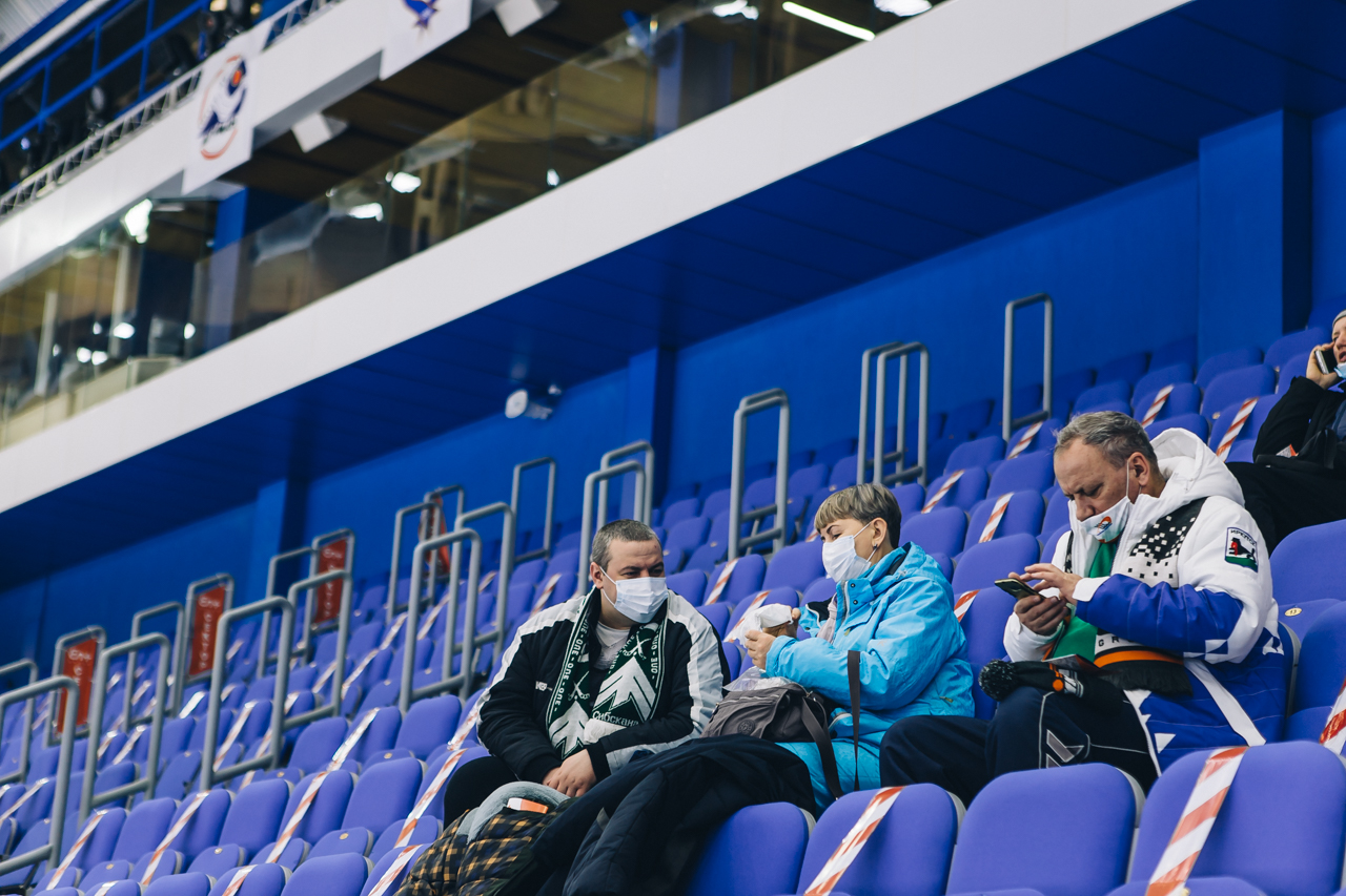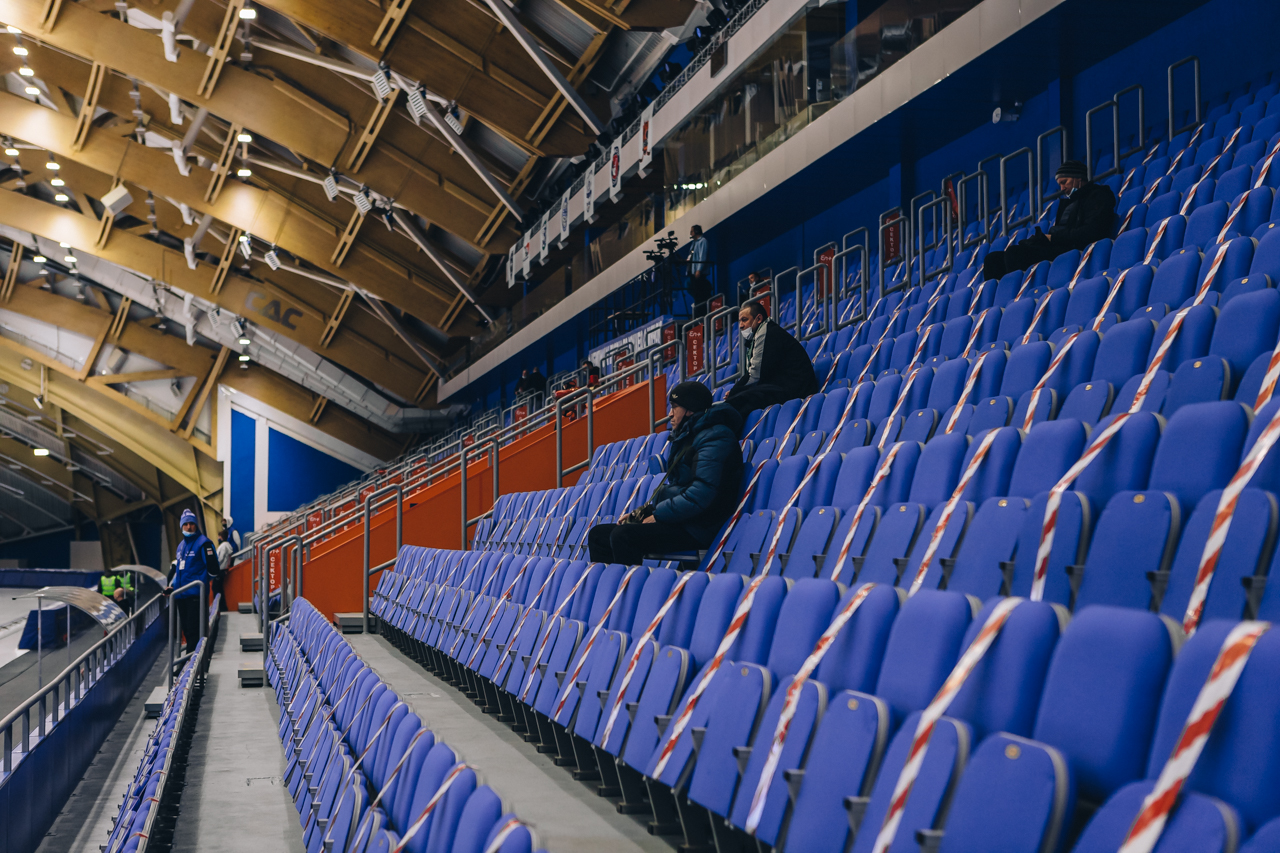 На часах 17:00. До начала матча остается два часа. Все билеты были проданы еще две недели назад. Через полчаса в здание начнут запускать первых болельщиков. С учетом новых правил рассадки — 50% от заполняемости зала, на матче ожидают три тысячи зрителей.