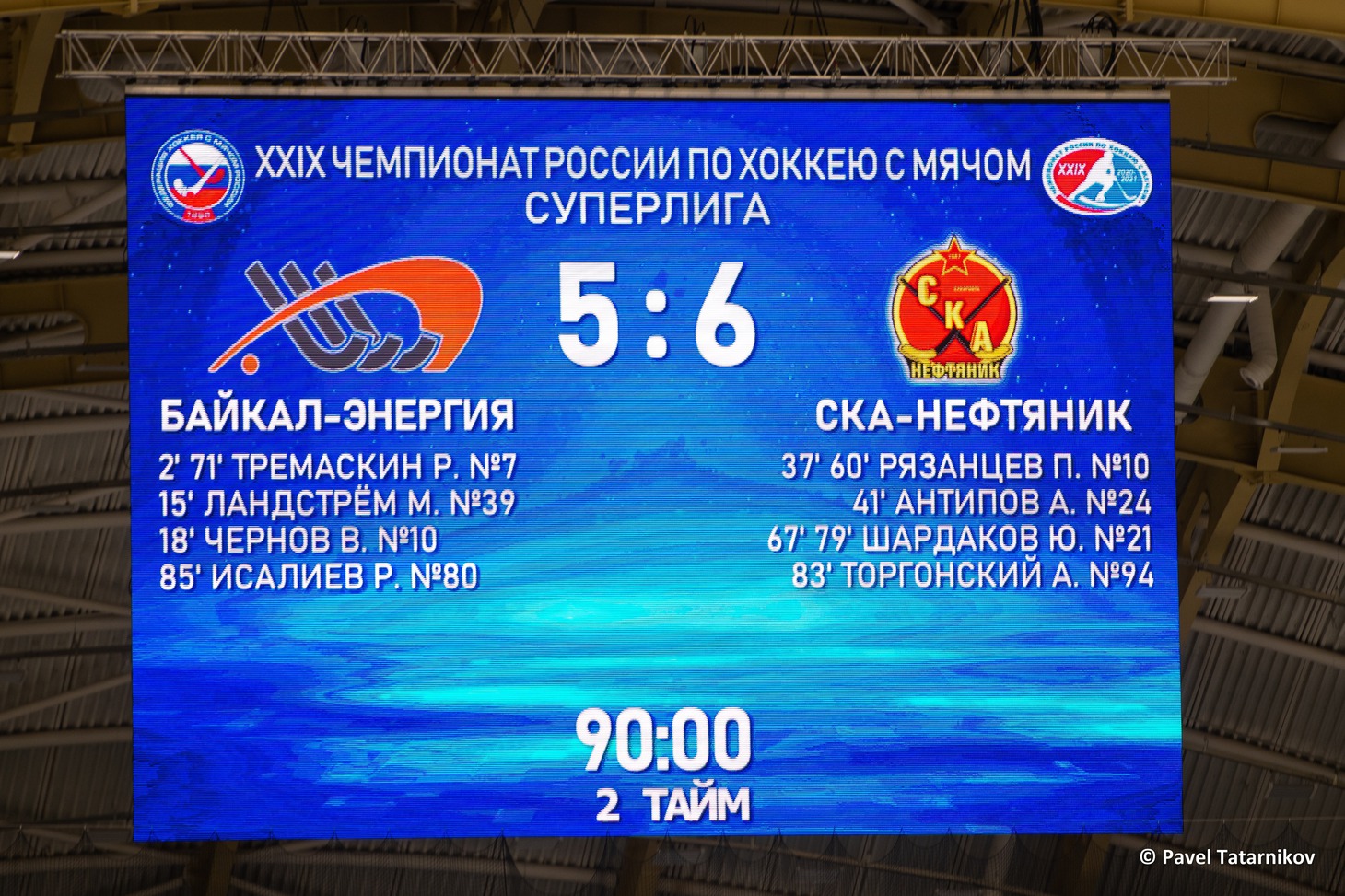 По итогам встречи «Байкал-Энергия» уступила команде «СКА-Нефтяник» со счетом 5:6.