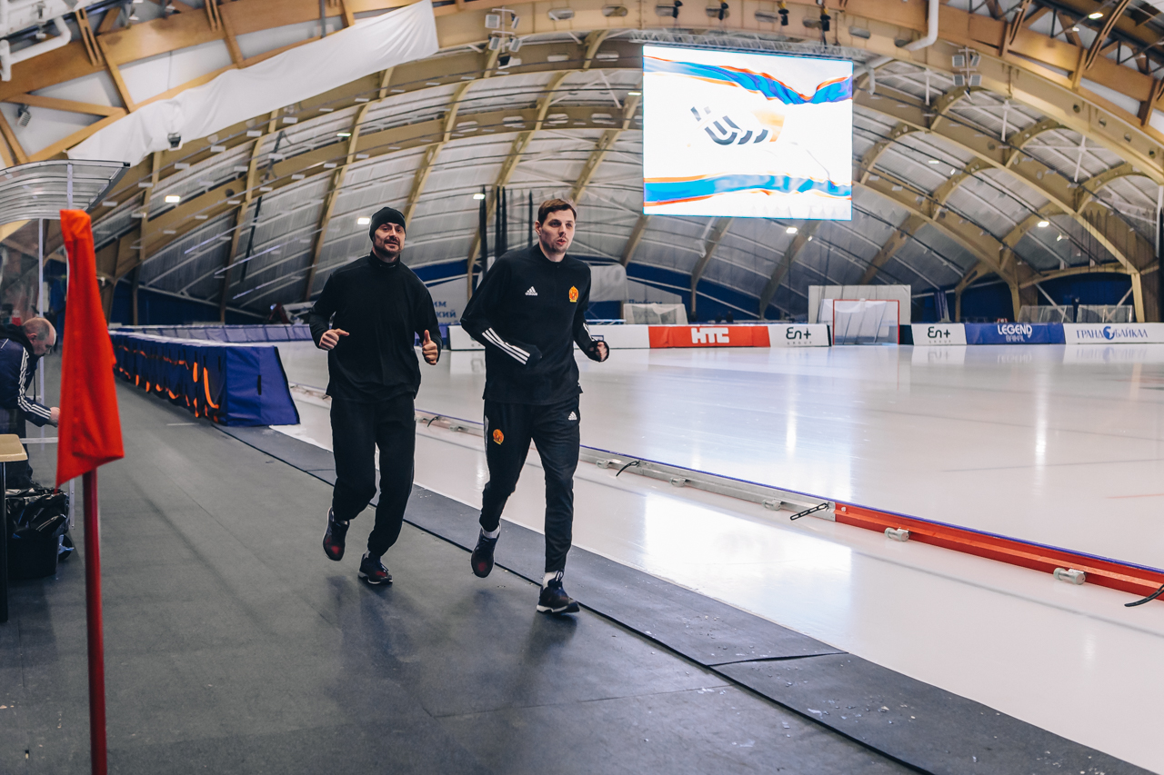 Сегодня для хоккеистов «Байкал-Энергии» это уже второй выход на лед. Они приезжали сюда к 12:00. После утренней раскатки хоккеисты обычно едут отдыхать и настраиваться на матч. В ледовый дворец команда вернулась к 17:00. Перед матчем вместе с игроками на раскатку выходит судейская бригада.