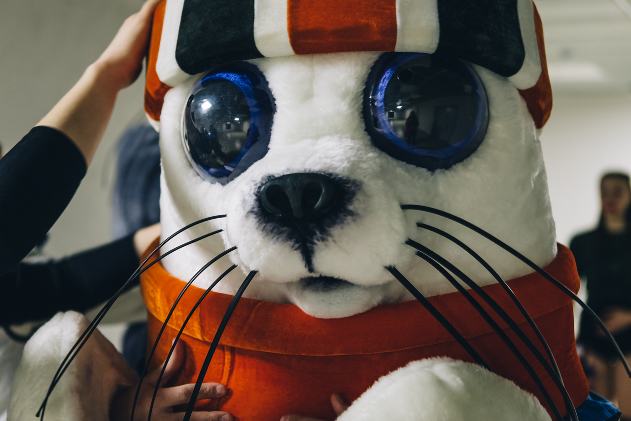 Гостей встречают нерпы и девушки из группы поддержки. После этого талисманы нашего клуба выйдут на лед, чтобы встретить команду. В перерыве нерпы вернутся в фойе первого этажа.