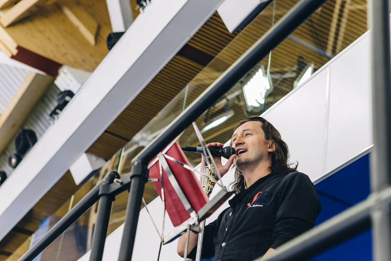Для собравшихся играет кавер-группа Burrn. «На домашних матчах нашей команды выступает три музыкальных группы, они каждый раз меняются», — говорит Артём Непомнящих.