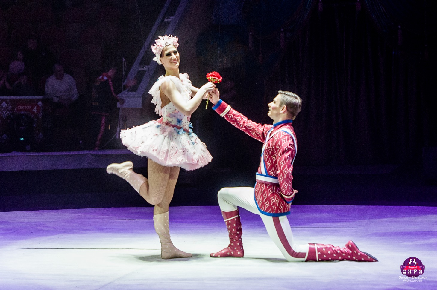 В общем, детскую публику номера с животными точно порадуют. Впрочем, сказочных вещи творят все, кто занят в спектакле — ловкие акробаты на мачте, головокружительные эквилибристы на рейнских колесах, акробаты на джамперах, романтичные воздушные гимнасты на ремнях, современный эстрадный балет.