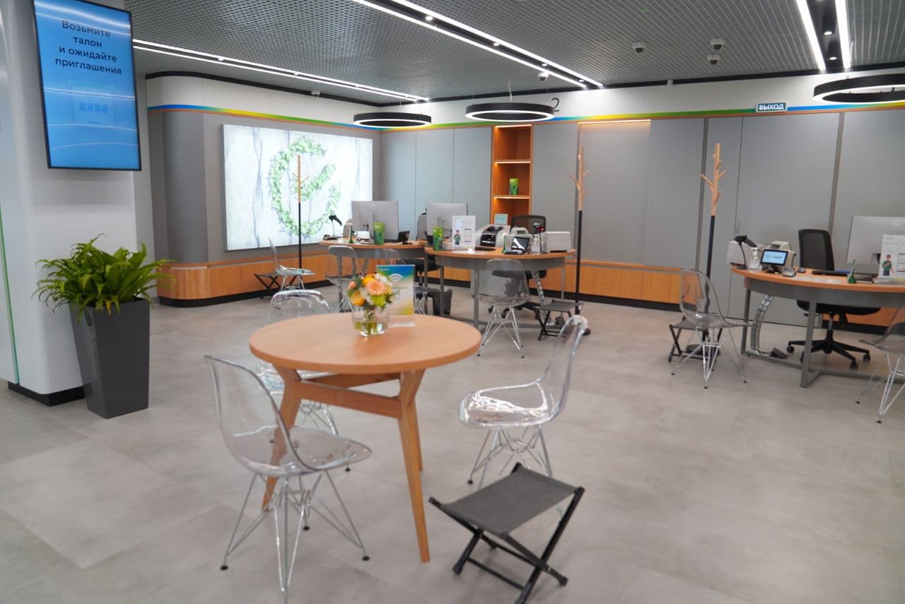 В новом офисе «Сбера» можно в приятной обстановке не только подождать своей очереди, но и поработать. Есть бесплатный Wi-Fi1, удобные кресла. Нужно взбодриться кофе? Пожалуйста, автомат всё приготовит.