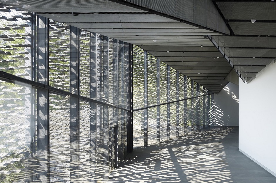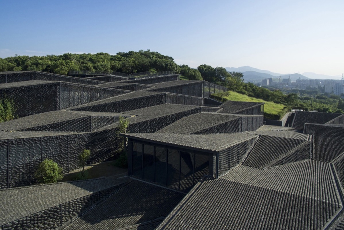 Здание музея площадью пять тысяч квадратных метров располагается на бывшей чайной плантации. Оно бережно повторяет изгибы природного склона – полы галерей следуют его взлетам и падениям. Строение разделено на сегменты в виде ромбов, которые поднимаются вверх, шаг за шагом. Оригинально проработана крыша — для нее использованы тысячи изогнутых черепичных плиток. В итоге каждый блок выглядит как отдельный дом в старой деревне, идеально вписывается в местность, и архитектура не создает ощущения варварского вторжения человека.