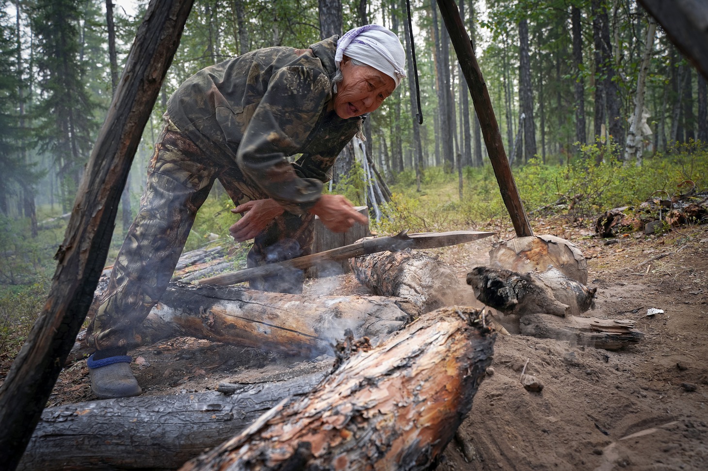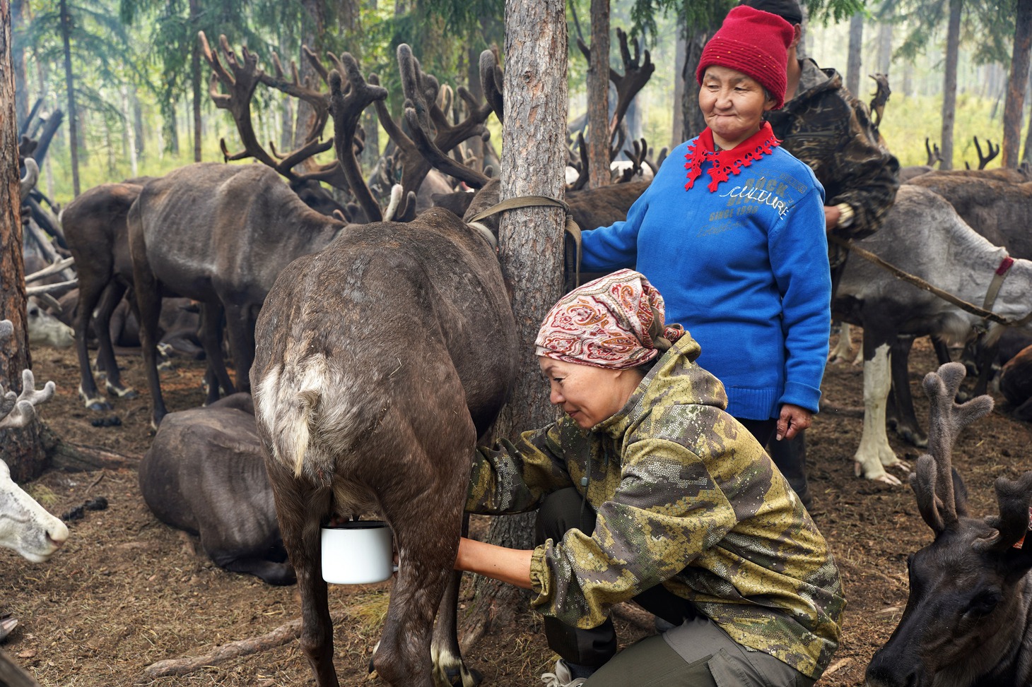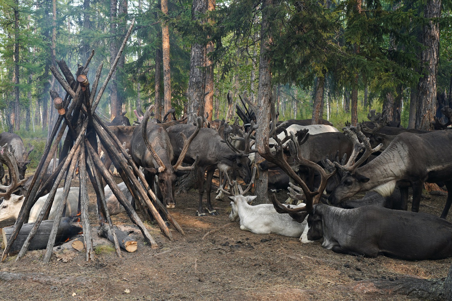 Олени, разбежавшиеся по лесу от грохота вездехода, тем временем постепенно возвращаются на место дневной лёжки, устроенной возле дымокуров, защищающих животных от кровожадного гнуса и мошкары. Пасутся животные строго по ночам. Почти у каждого животного на шее колокольчик, помогающий при необходимости найти заблудшего оленя в лесной чаще. Это самый желанный подарок оленеводам, потому что колокольчиков на всех животных не хватает, поэтому их мастерят даже из консервных банок, подвешивая свинцовый груз. Звук, конечно, не тот, но функцию свою выполняет.