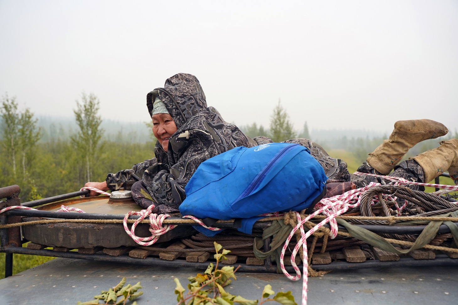 Порядка полутора часов ушло на погрузку вездехода, его кузов загружали согласно длинного списка: мука, сахар, одежда, растительное масло, чай, лапша, своеобразной вишенкой продуктового набора стал арбуз. Как выяснилось позже, одна из женщин стойбища никогда не пробовала большую ягоду. Рабочую одежду — дождевики, сапоги грузили поверх продуктов, отдельно шли книги. Литература в тайге пользуется особым спросом, там даже обыкновенный листок перекидного календаря перечитывают несколько раз.