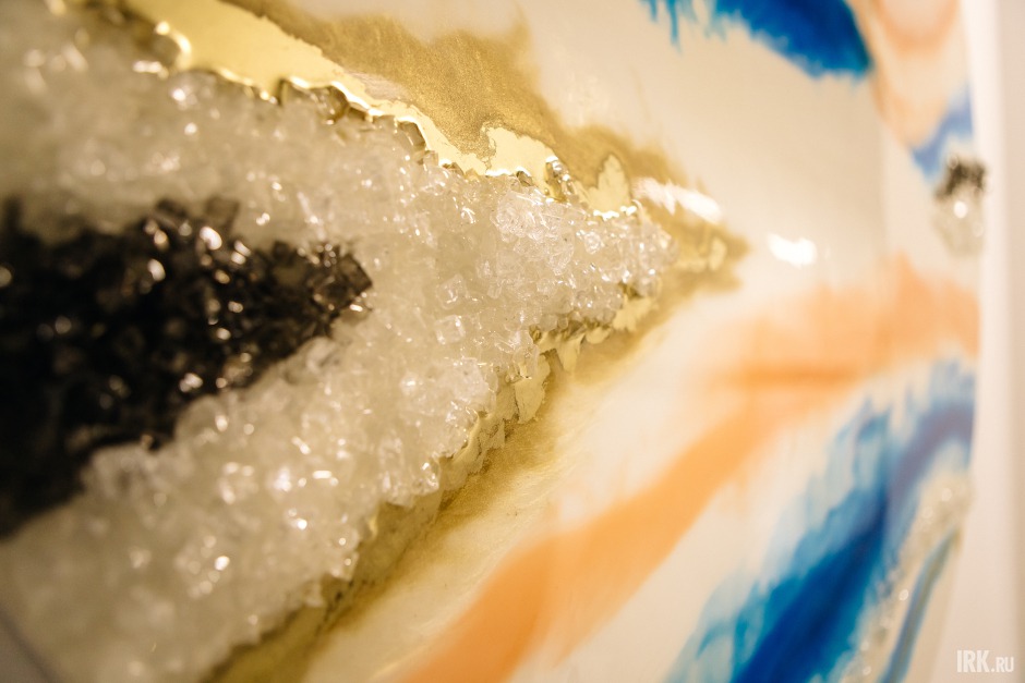 На первом и втором этажах висят картины из эпоксидной смолы — работы иркутской художницы. Изображения воды выполнены специально для этого проекта. «Вода, как и настроение человека, очень разная, что нашло отражение в этих картинах», — пояснила задумку Наталья. Интерьер остальных этажей украшают фотографии Байкала и крупных сибирских рек.