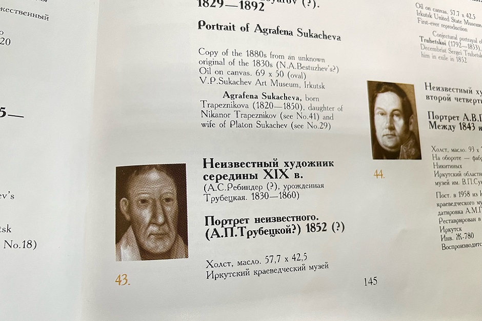 – По данным учетной документации, которая была утрачена, но по словам директора, а потом главного хранителя Краеведческого музея Владимира Свинина, он вроде бы видел эту запись, где было написано, что это портрет Сергея Петровича Трубецкого. Больше никаких сведений по этому поводу выяснить нигде не удалось, потому что часть документации в 30-е годы была или изъята, или просто не заведена. Была большая путаница, и, когда в Иркутске начали массово появляться музеи, предметы искусства распределялись по большей части беспорядочно. Часть экспонатов была описана, часть нет. Но именно этот портрет имел номер 8592/17, но книги поступлений с таким числом нет, – рассказывает Ирина Горбунова.