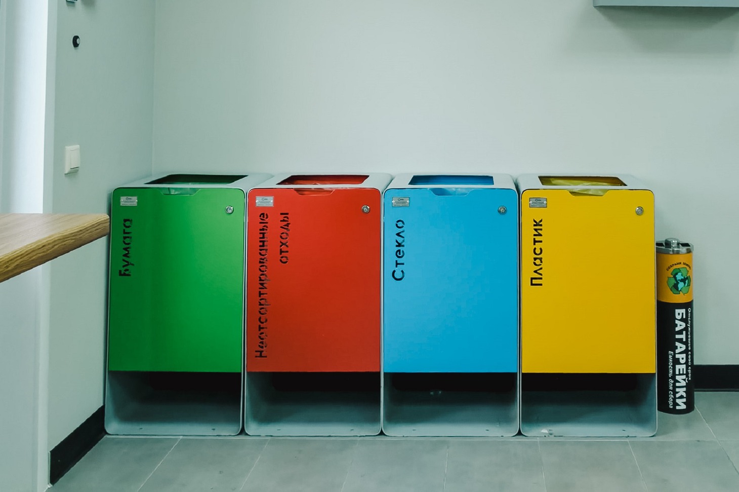 В отделение можно принести отслужившие своё батарейки. Из специальной урны их потом отвезут для безопасной утилизации. Для раздельного сбора мусора установлены контейнеры.