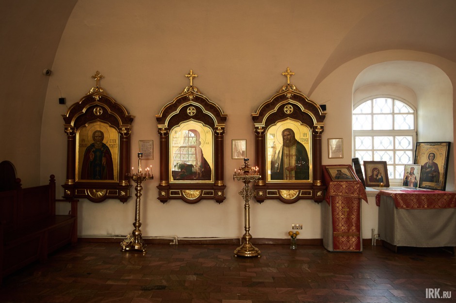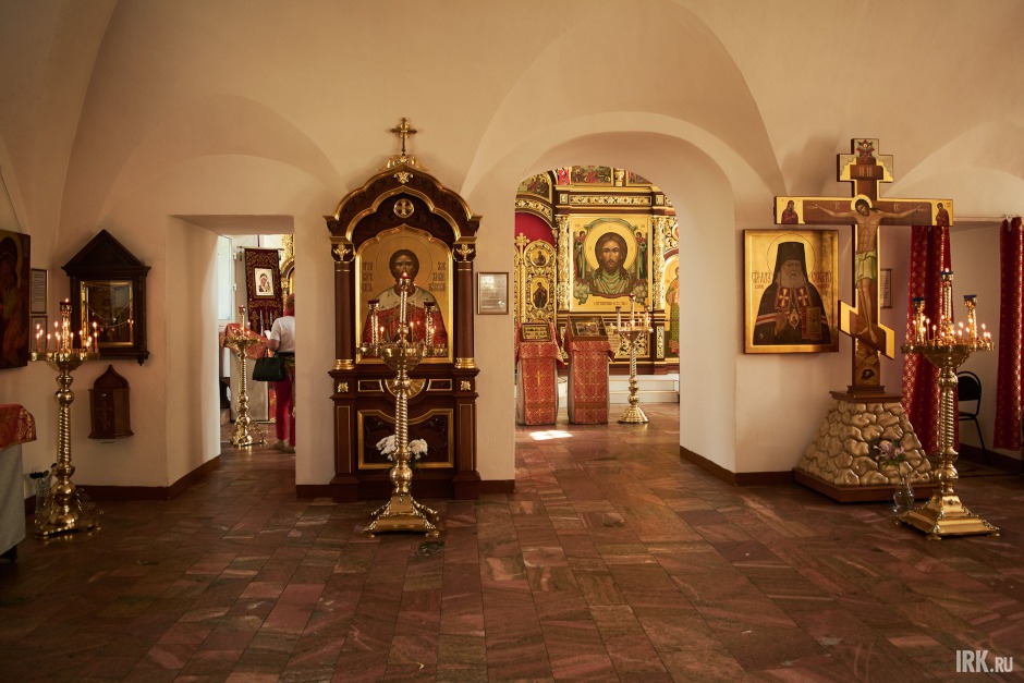 У восточной стороны храма находится крипта с захоронениями останков первопоселенцев, найденных при раскопках у храма в 2006 году. Александр вспоминает: как только храм передали Иркутской епархии, сразу же приступили к восстановительным работам: нужно было укрепить фундамент, так как под ним образовались провалы глубиной до трех метров. Когда начали копать, на расстоянии трех метров от западной стены здания обнаружили более 250 останков первых жителей Иркутского острога – возможно, среди них были и те, кто строил этот храм.