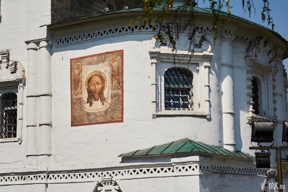 Спасская церковь (храм во имя Спаса Нерукотворного Образа) расположена всего в нескольких метрах от Вечного огня. Это был первый храм, который появился в Иркутском остроге. Каменное здание, которое сохранилось до наших дней практически в первозданном виде, построили в 1710 году, а колокольню и шпиль — в конце 1750 — начале 1760-х годов. Об истории храма написано множество очерков, поэтому мы не будем подробно останавливаться на ней, а опишем, как старинный храм выглядит сегодня изнутри и снаружи.