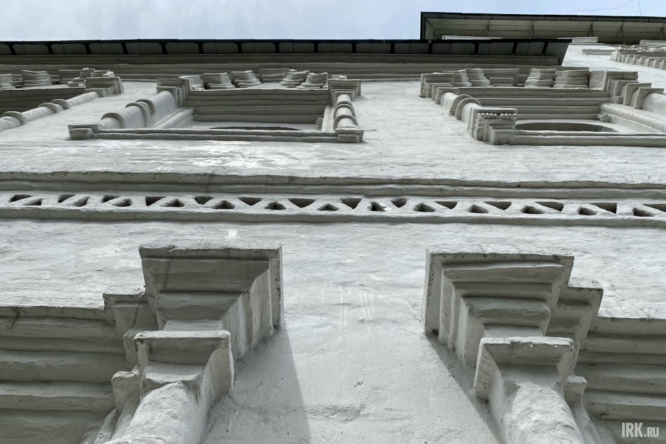 Храм украшен подлинными росписями начала 19 века. На восточном фасаде сохранился великолепный триптих, созданный в 1805 году. В центре фрески изображено Богоявление (Крещение Иисуса Христа), слева — исцеление расслабленного в купели Силоамской в Иерусалиме, справа — возведение Иннокентия Кульчицкого (первый епископ Иркутский. – Прим. ред.) в сан епископа. Последняя часть триптиха была переписана при реставрации в 1974-1977 годах; первоначально вместо фрески с Иннокентием Кульчицким был изображен крестный ход для водоосвящения.