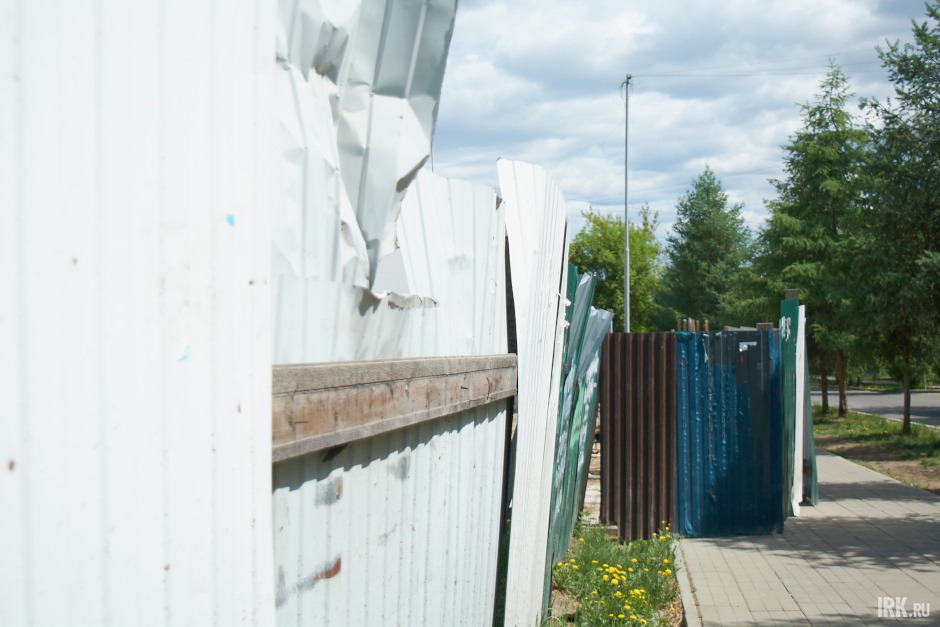 Несколько лет назад начался ремонт коммерческого здания, и его огородили строительным забором из профлиста, захватив при этом парапет и часть тротуара. Однако в процессе ремонта никого не смутило наличие забора, и плитку положили прямо по краю этого ограждения. А в прошлом году собственник здания вынес забор еще на метр на тротуар, оставив пешеходам только половину положенного пространства. За чей счет, а главное, когда это будут исправлять — неизвестно.