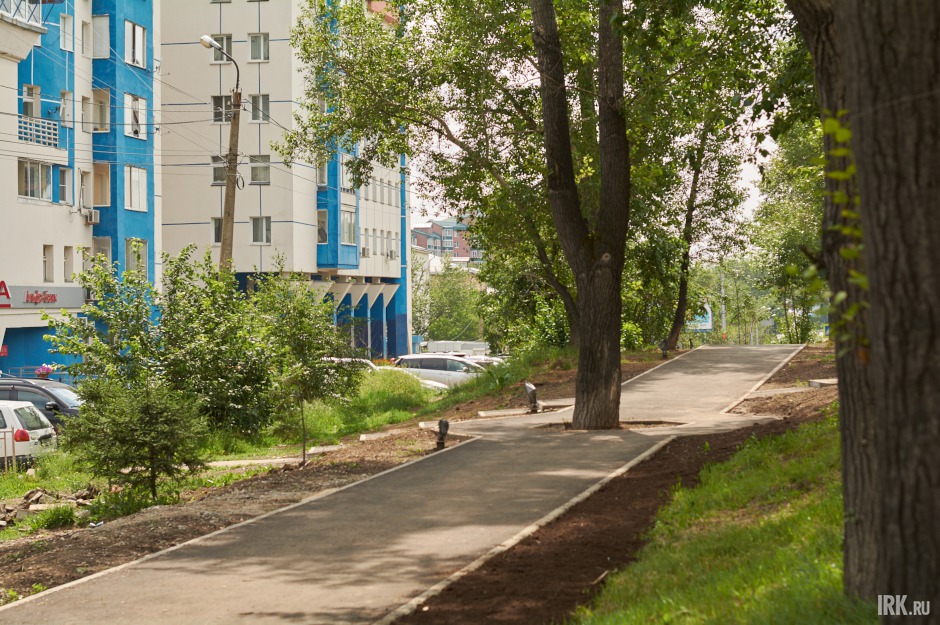 Вместе с депутатом мы направляемся к смотровой площадке на берегу Ангары, откуда, как говорят, открывается чудесный вид на город. Проходим по территории рощи «Звездочка». Несмотря на будний день, здесь много людей: ребятишки играют на детских площадках, гоняют мяч, катаются на самокатах, а взрослые отдыхают на лавочках в тени деревьев.