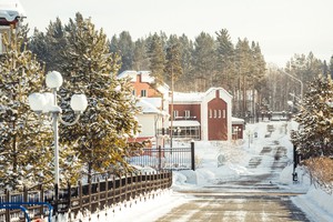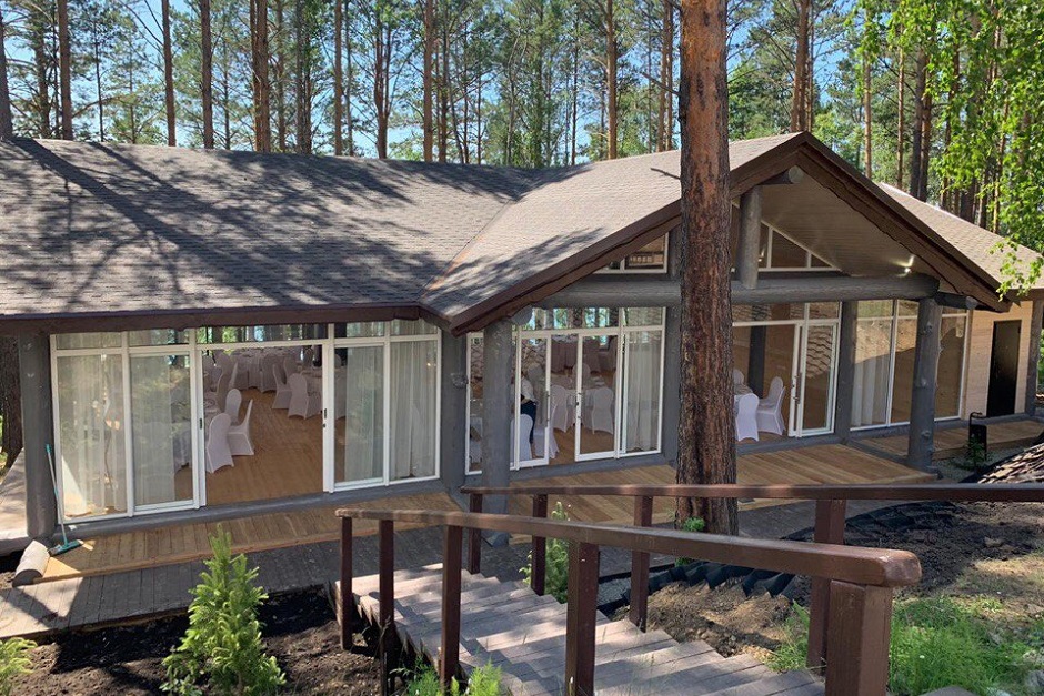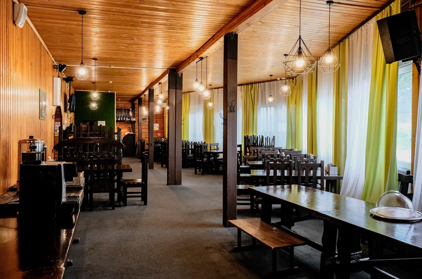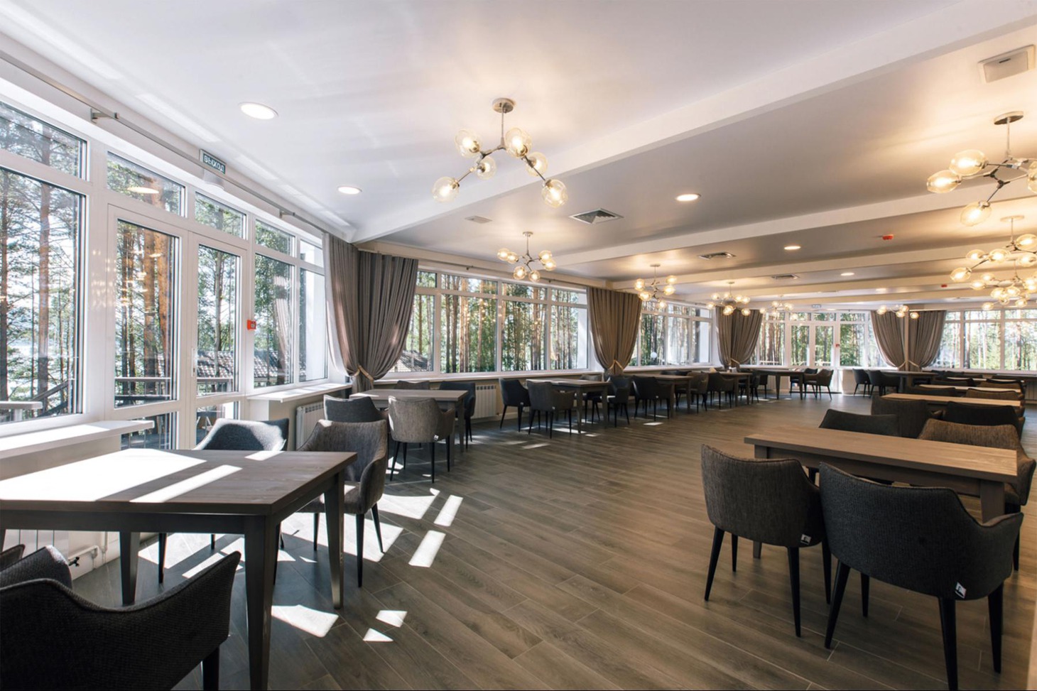 На территории отеля расположены три бани, объединенные в одно здание, панорамный ресторан, две прозрачные беседки и два конференц-зала. Также к вашим услугам: две караоке-студии, кинозал с большим экраном и хорошей акустической системой, соляная комната и широкой выбор спортинвентаря напрокат.