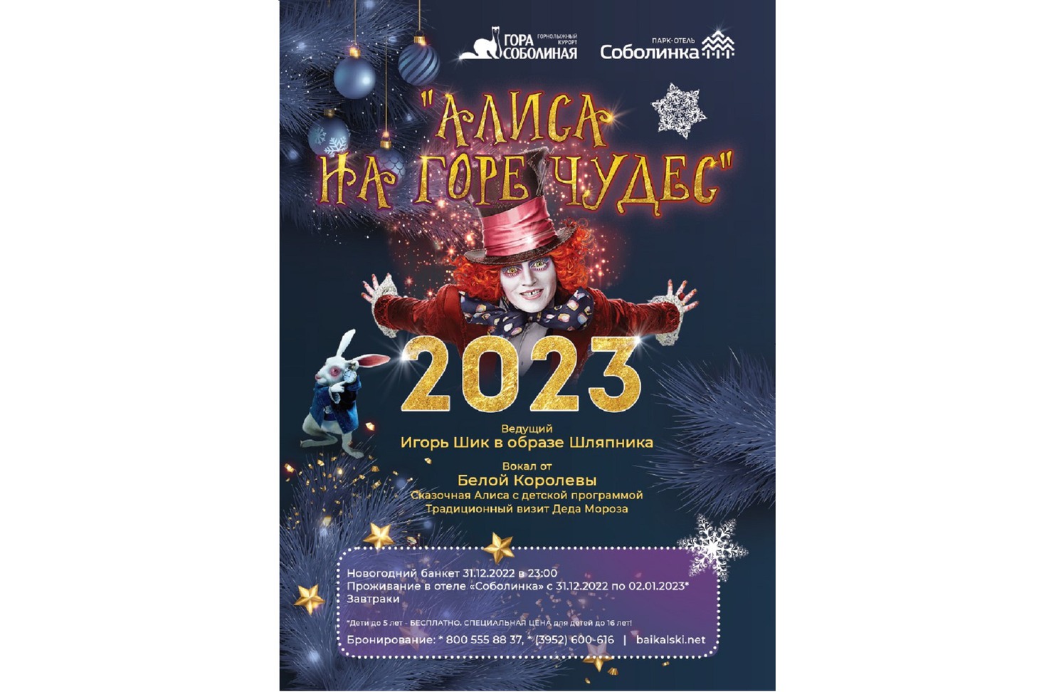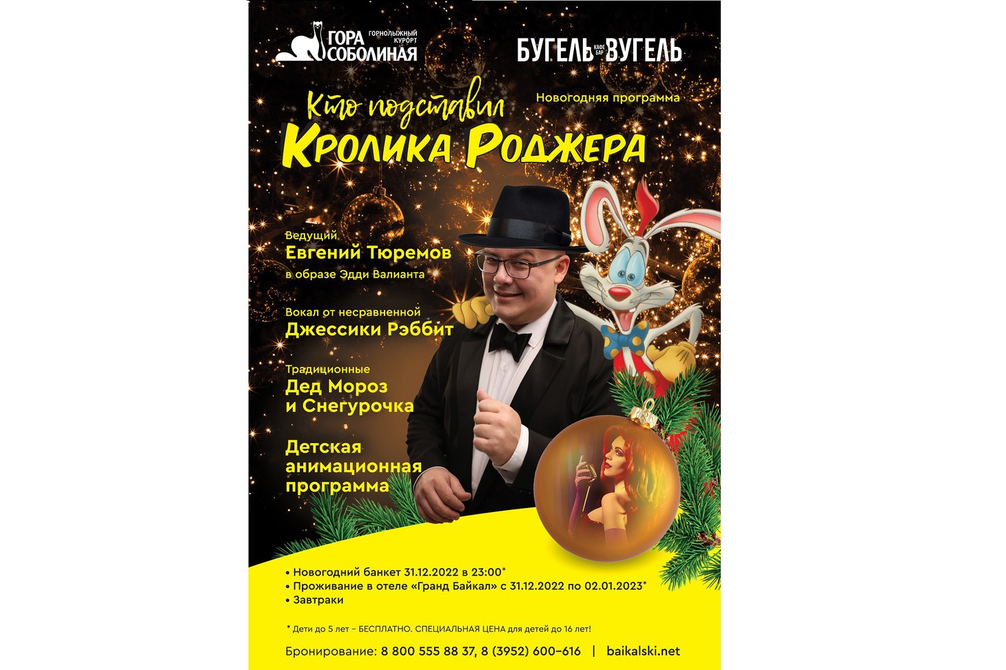 Сказка уже ждет вас – в отеле «Гранд Байкал» на атмосферной вечеринке «Кто подставил кролика Роджера?» и в парк-отеле «Соболинка» с «Алисой в Стране чудес». Много музыки, живого вокала, а также детская анимация, тематические фотозоны и, конечно же, Дед Мороз и Снегурочка!